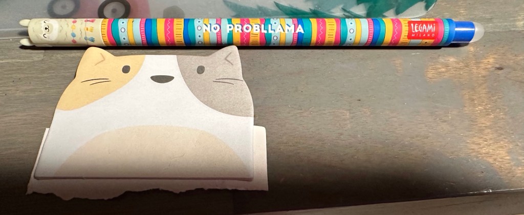 I like my erasable ink llama pen and kitty note paper from today’s advent. They amuse me