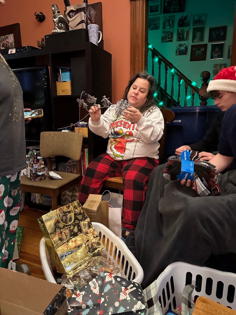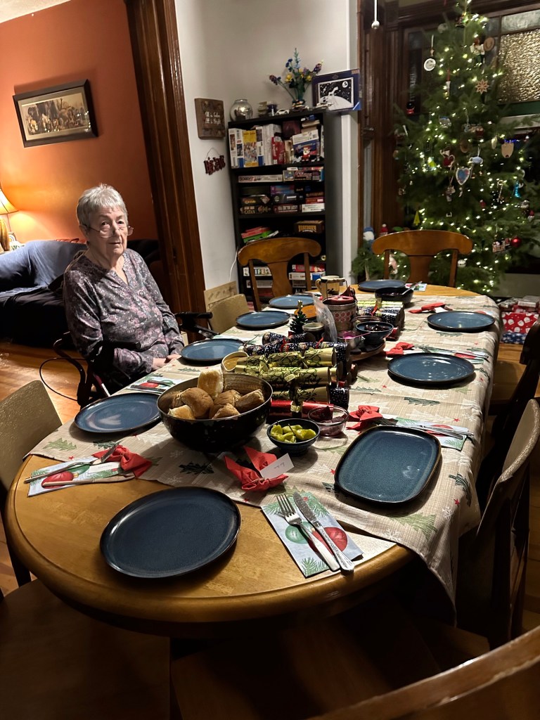 I dawdled and got some no honey to do list items taken care of before packing up the car and heading over to the kids house. It was lovely to meet Yumi, Jake’s girlfriend. She is easy to talk to and seems to fit in well, which is a bonus. I am so glad they were able to make it. We all pitched in to get a wonderful dinner made before we packed into three cars and headed to Bill and Deanne’s church for the carol service. I had a lovely hug and moment with Trudy. I didn’t know she and Peter went there and he did a great job playing guitar and leading the singing. He has a great voice. There were others there who did not make it comfortable for me and I did not find joy in the singing and peace filled atmosphere that there usually is. I was surprised to find myself in a bad space mentally and couldn’t wait to leave. I had Judy, Bill and Deanne in my car and we followed the kids to find Santa on his rounds and then popped by to look at a few places with lights. I walked and live streamed Candy Cane Lane which is always so beautiful. We also stopped in the parking lot below Mom’s window and wished her a merry Christmas. Once back at the house, I asked if we could decide on our days to book and buy tickets for Disneyland. I have been obsessing about it and need to get it done and compartmentalize it away so I can get work done and organized to go. I caused a big todo by asking on Christmas Eve and while I was putting things in stockings, Ashlée took me to task over it. I lost my shit and decided to go home. Rae stopped me upstairs and we had a good long talk and I came off the ledge. I don’t understand the dynamics with my middle child. Often I just am able to walk away or ignore, but tonight, her attitude was the straw and I hate that I made a scene. I am calmer now although part of me still wishes I was home in my own bed. I probably should book a session to talk out the things that have been building up.