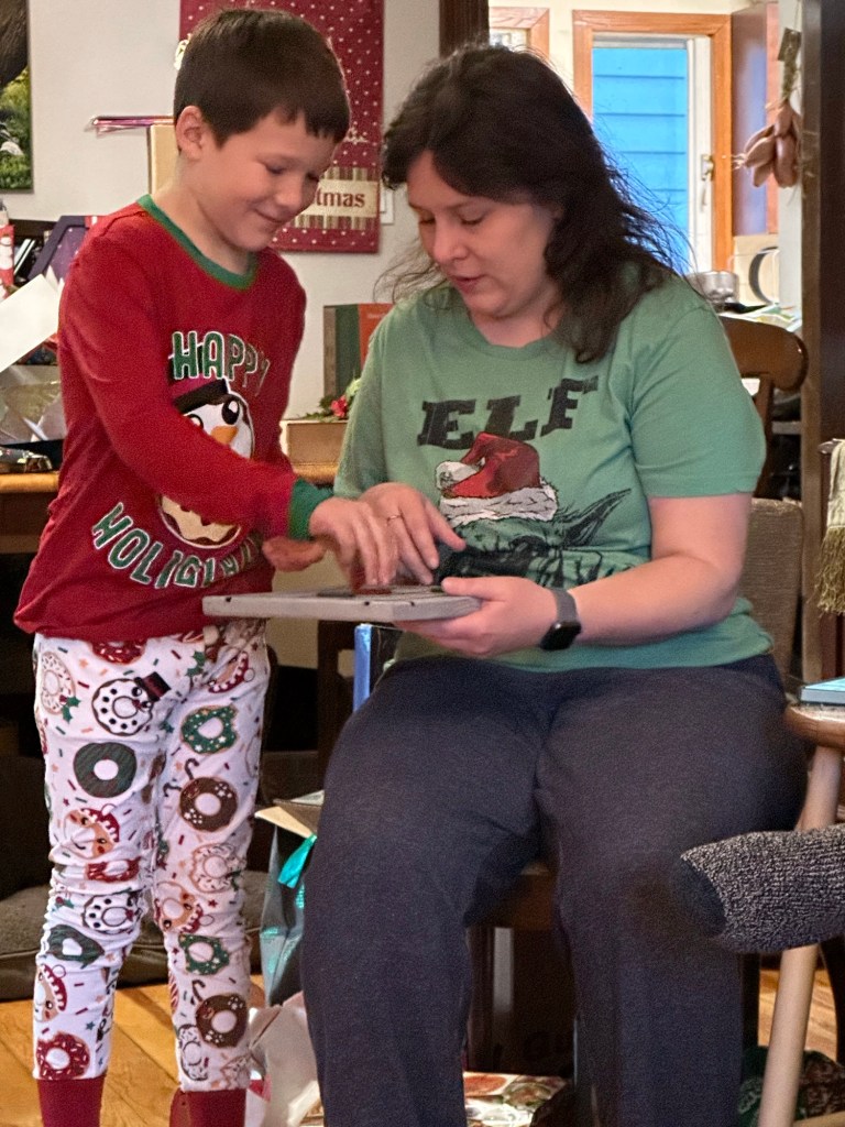 Sawyer came and woke me up some time after 7 with a good snuggle. We all headed down to the living room and began with coffee and stockings.