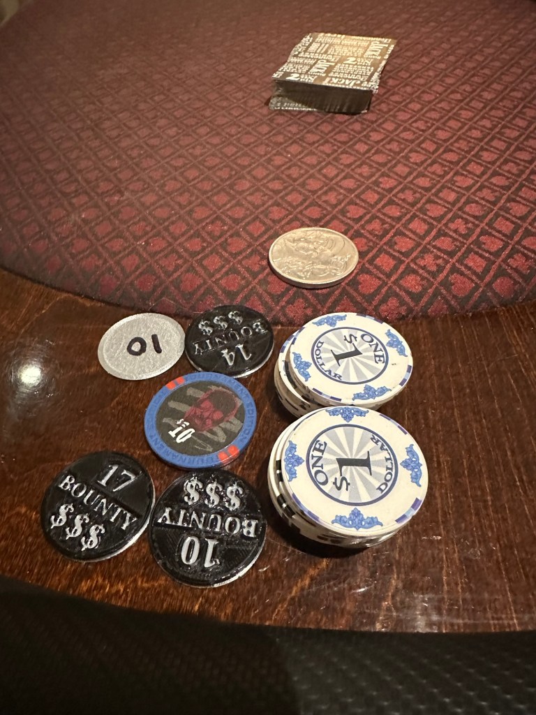 I finished binging Beef last night and it was good. Today I discovered there was a season of Better Call Saul that I hadn’t watched and it became my watch of the day. I made good headway on my puzzle as I watched. I tried on my outfit for tomorrow night’s 70s themed gig at Key City, did chores and then made red lobster biscuits to take to the annual big poker night at Landon’s. There were 30 of us and it cost $25. I had a great night, came out with 32.50 as I had so many bounties for taking out others, and split 8th place with Tyler. That was pretty great for 5 hours of good company and entertainment.