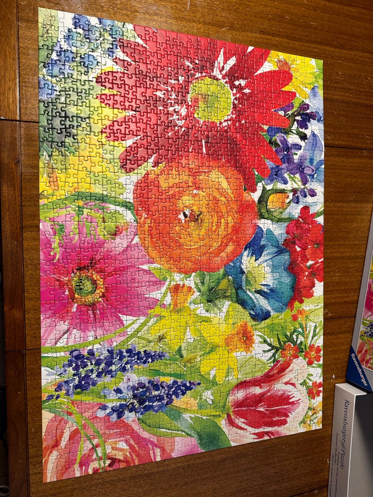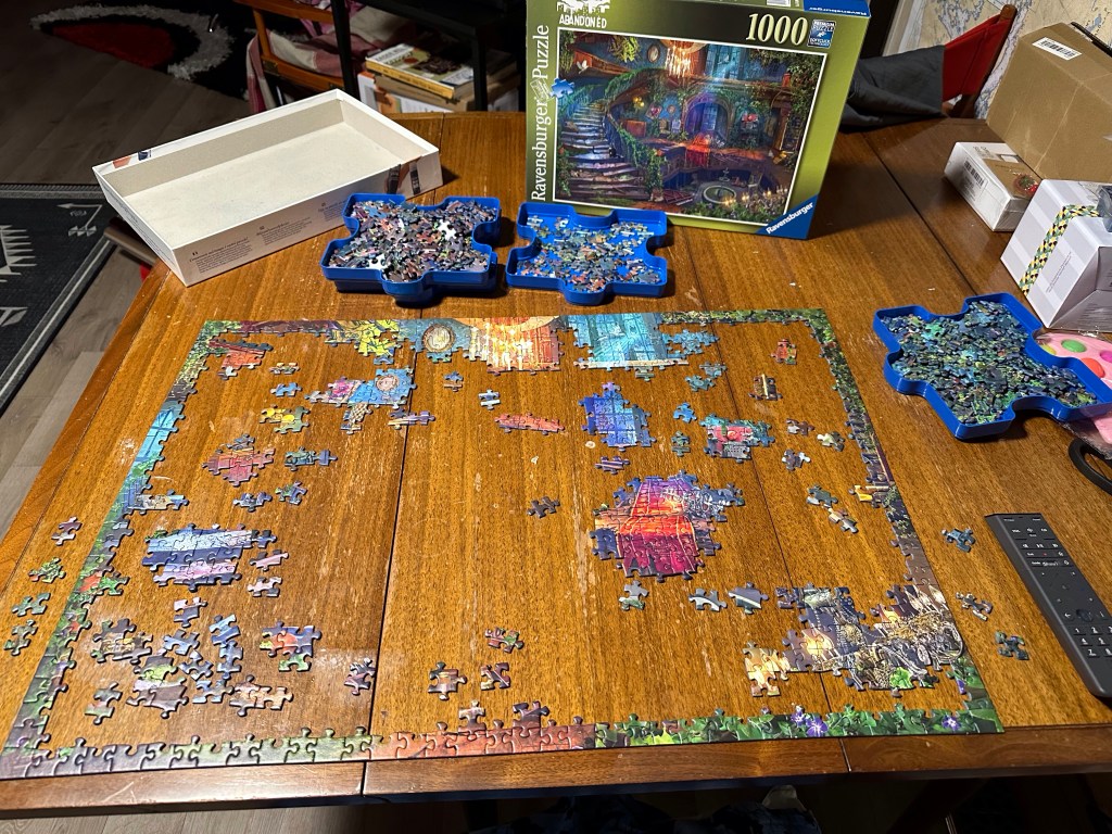 It was a stay at home, snow day. I did laundry, wrapped Christmas presents, watched Netflix and puzzled. It was wonderfully relaxing and I am now ready to full steam ahead into the season. I finished watch the sci fi series I was into, and can’t even recommend it. Just had to see it to the end. The next was “All The Light We Cannot See” which was fabulous, a must watch. Now I am watching the oddest mockumentary, Cunk on Earth. I loved today’s advent earrings