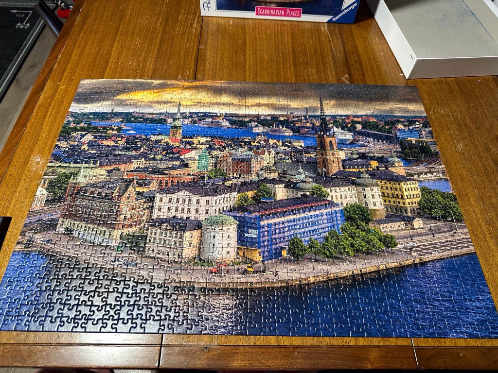 Got home around 5:30 after taking my recycling to the bin and cooked a New Zealand pot pie that I bought at the market yesterday. Along with some rice it was really delicious and now I have lunch for tomorrow. I finished another puzzle (good thing as I bought 3 more on sale in the mall)