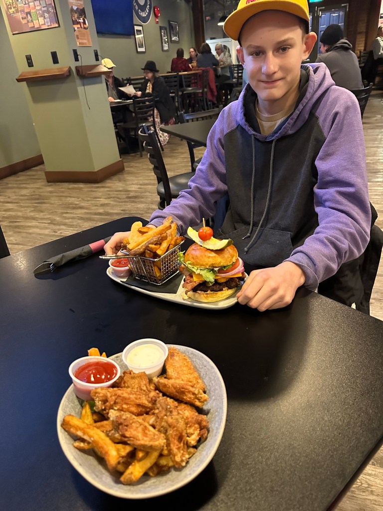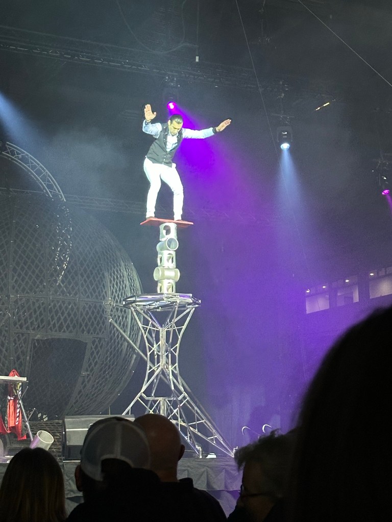 I worked a good part of the day and then ran out of steam. I had been up early to take a Dr call to renew my prescriptions. Nancy and Leanne from Rotary came to my office to meet and explain the process to become a member. They were both lovely and I look forward to volunteering with them. Just before 5 I picked up Lukas. We parked at the arena, hoping to eat at the Blue Sky Diner but it was closed, so we walked to Fenwick and Baker. I loved my chicken wings, but unfortunately there was something in the sauce on Lukas’s burger, the Samsquatch burger of the month, that he did not like. It was a shame, but we had a nice visit and walked back to find our seats. It was Christmas Rock Story, a Holiday Family Circus. There was an aerial/roller skate act that I have seen on AGT and the male singer was especially good. It was entertaining and I was glad to see a good turnout. Lukas seemed to really like it. We are lucky with the shows that go through here.