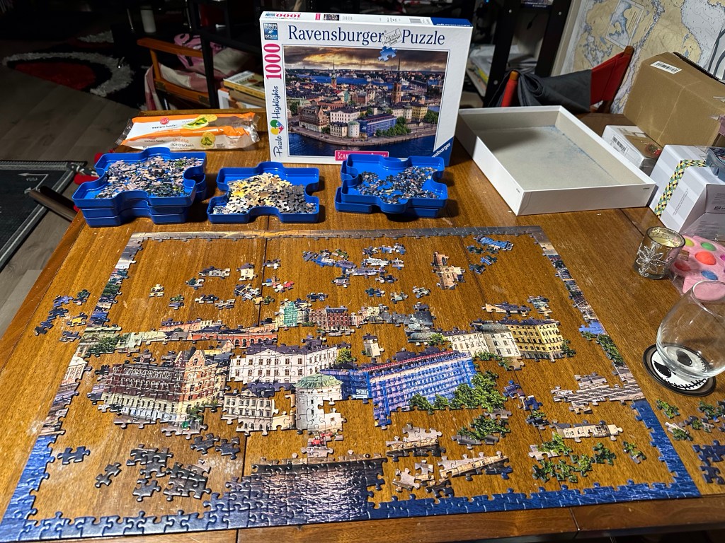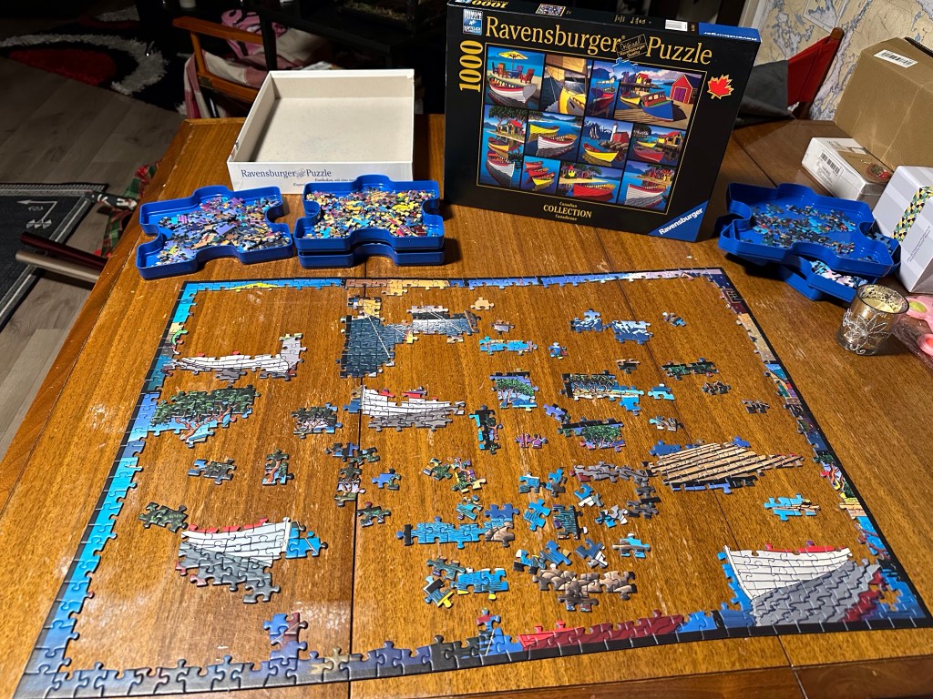 Or easily entranced? I did work today, both for myself and for a mystery shop. I also bought CBD Tea bags to send to a friend in Bella Bella. There is no source there. Once home, I settled in watching my recorded Voice episodes and finished a puzzle. Then I started watching Squid Games which had been recommended to me as I worked on a new puzzle. And then suddenly I realized it was nearing midnight!