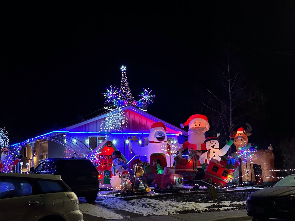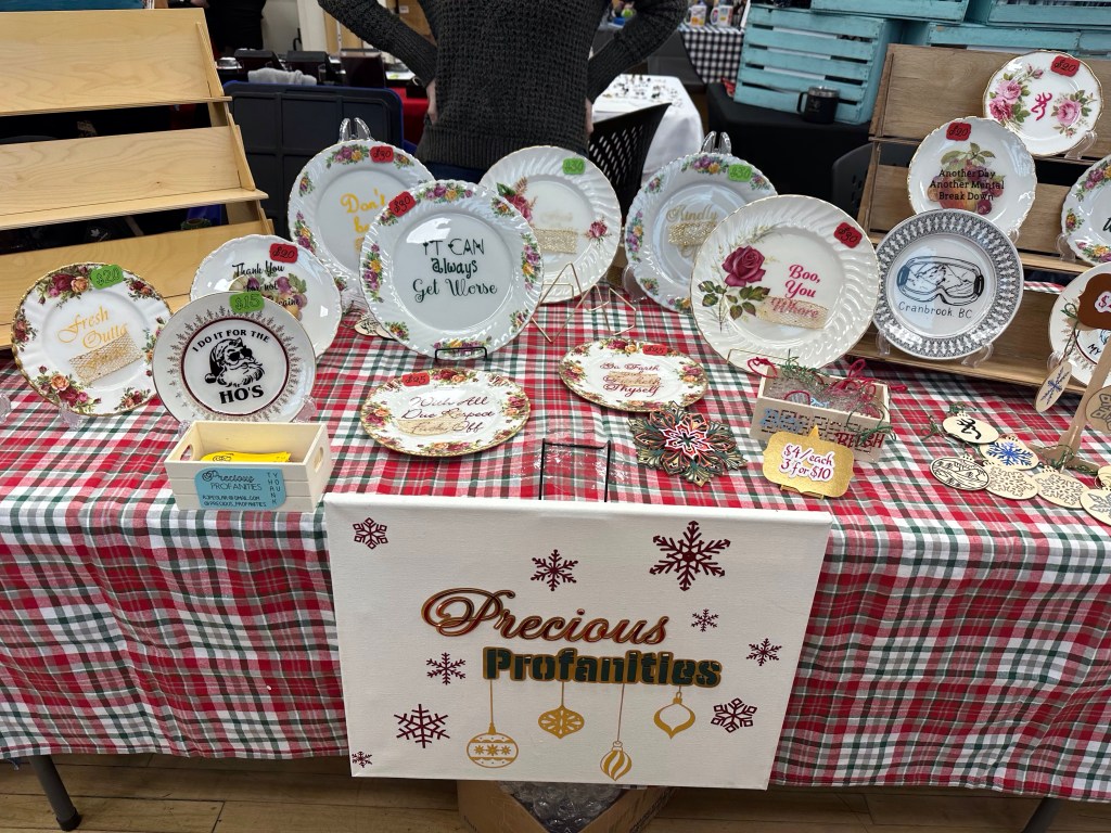 Ok, so I was so intoxicated last night, due to red wine, that I didn’t use my CPAP. I just fell into bed before 10 and woke up at 4:40! I tried to go back to sleep but still hadn’t clicked that I wasn’t using my machine and that it was likely the reason that I had a headache. I took Tylenol and more water and slept for a bit longer. Once I woke up, I made a plan to check out what events were going on in the area. It turns out that the snow was coming down heavy. Danika messaged to see if I wanted some Emmy time and it was then that I remembered I had left my car at the restaurant last night. I reached out to Diane, who had done the same and they said that they would pick me up. I retrieved may car, picked up Emmy and we headed to pick up Donna in Marysville on our way to check out the markets in Kimberley. The good and bad was that we had to follow a snow plow all the way. The road was clear but the plow created white outs in a few spots. We got there safely and headed to check out the Francophone school market in Meadowbrook, the markets at The Elks club, Centre 64 and at Bohemian Spirits. I picked up a few pairs of cute earrings, and mostly bought things that kids had made to support them. Emmy made some awesome purchases with her money. I was so thrilled to have such a good visit with her. I finally stopped in to Mountain and Pestle, my clients who opened a lovely pharmacy. I stopped at Earth’s Own Naturals, my other client, to pick up some CBD bath bombs, a beverage and some sleep aids. We then had a delicious lunch at Our Place in the Platzl before I popped in to Grist and Mash, my clients as well, where I stocked up on my favourite Maple Porter. Emmy slept all the way back to Cranbrook which was good as she was going to a Christmas party tonight and needed to rest up. I was surprised when Gwen came over and asked to be lifted up. When I had arrived earlier she called out NANA for the first time. It is so great to have the bonus grands. I popped home and shoveled before heading to my luxury pedicure appointment that I was lucky to get at the last moment. When that two hours was over, I dropped in to Encore to purchase tree decorations. For $10 you can feed two people Christmas dinner. Best $20 I spent all day. I stayed for a beverage and them James showed up and we played 5 games of pool. I held my own and came out the ultimate winner when he sewered on the 8 ball. It was fun and a perfect ending to the day. I did have a good visit with a friend and his service dog as well, hugging out the PTSD.