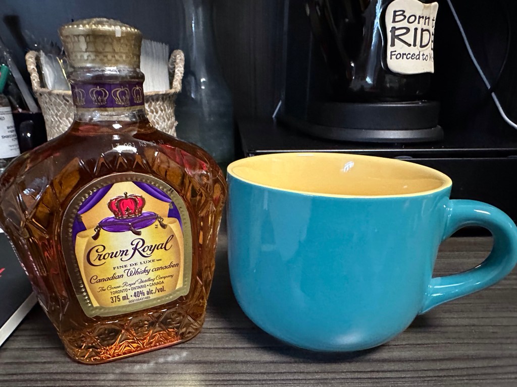I was thrilled to arrive at the office and given a Christmas present from Nikki that showed she really listens and knows me. I had mentioned some time previously that I wanted a good soup mug and she hoped I hadn’t gotten one yet. I hadn’t, and I am pretty sure the bottle of Crown that accompanied it would fit nicely in it, lol.