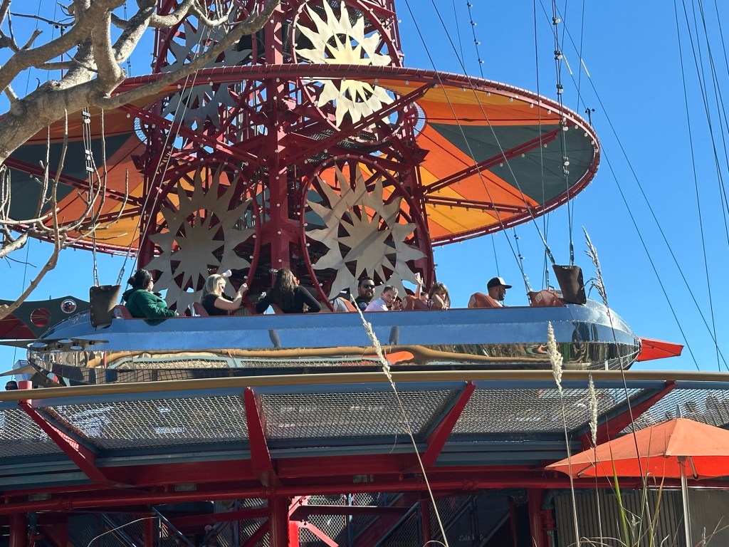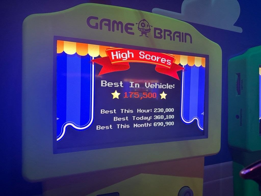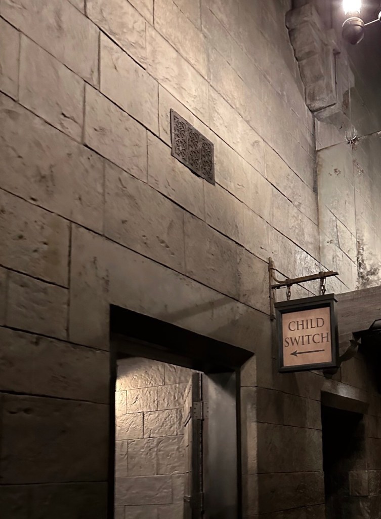 Two new things since I was here last are free lockers that use your fingerprint to lock and open them so you can put stuff in them that may fly away on a ride… and Child and parent areas where one parent can sit with a kid while the other rides, and then they switch