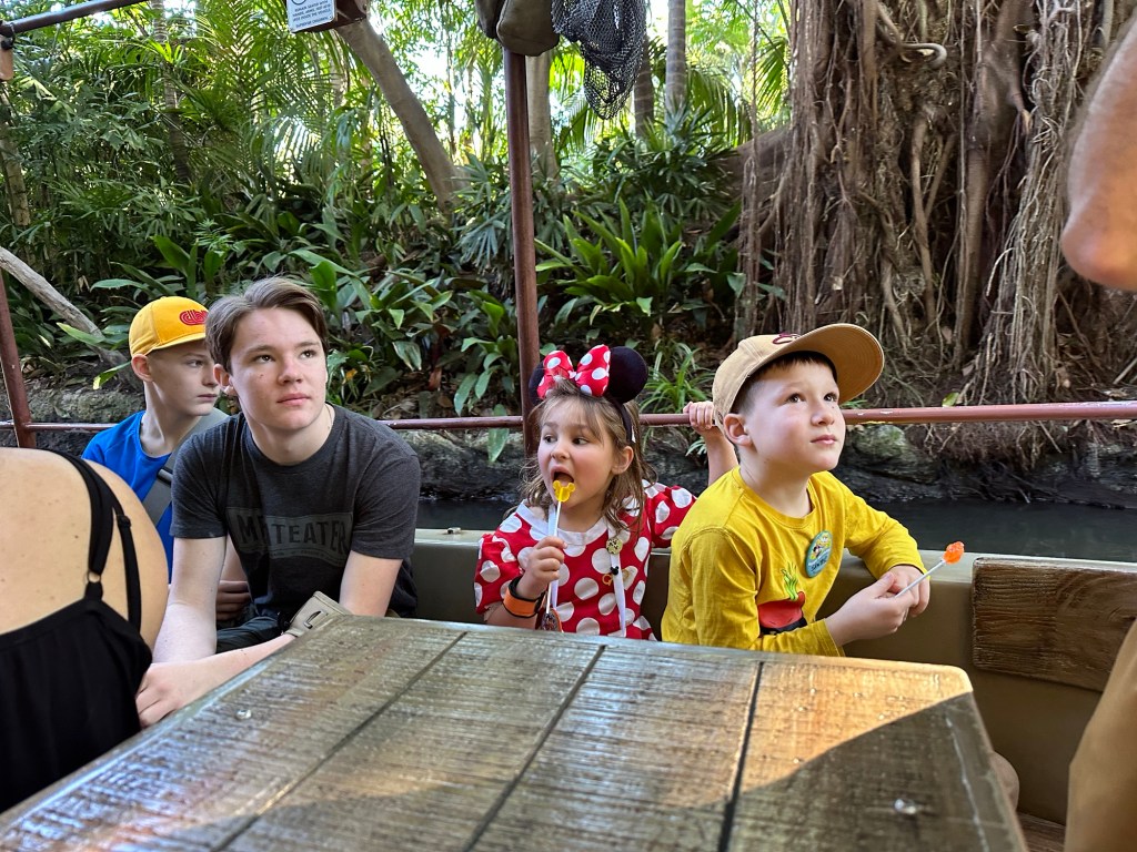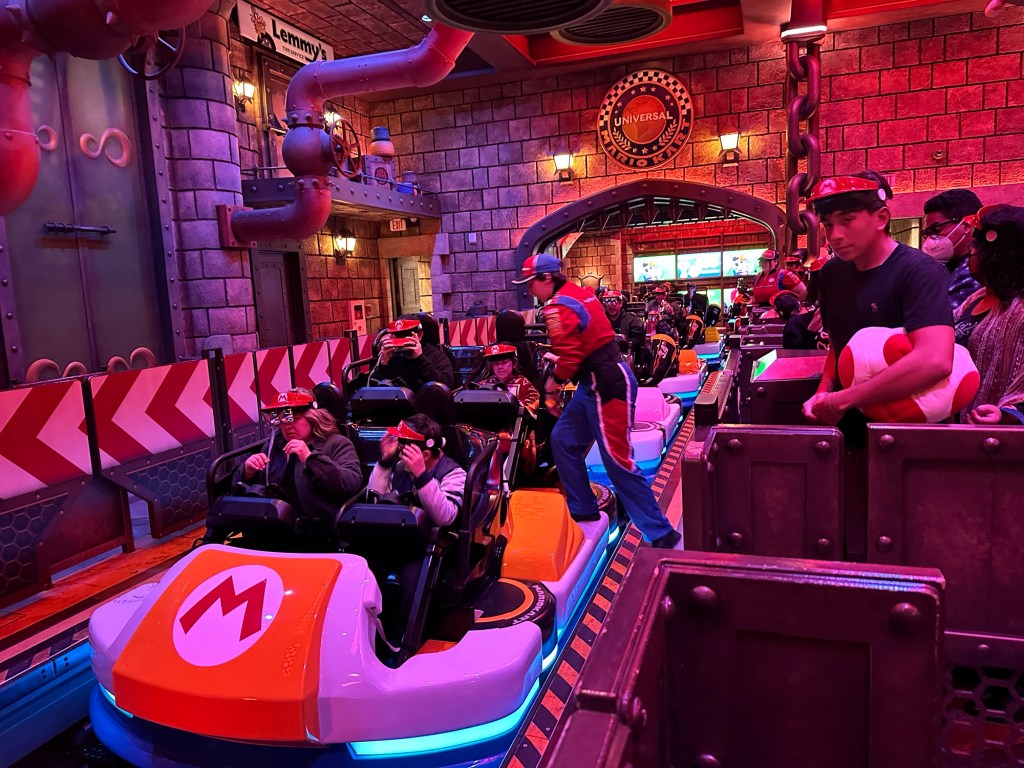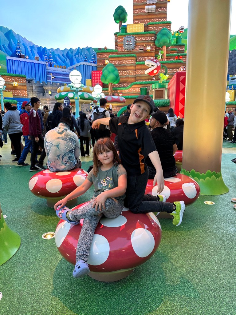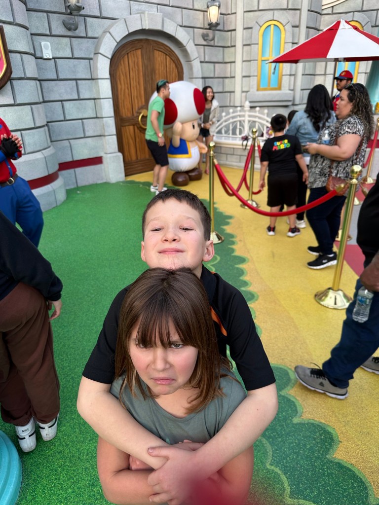 It was all just so much fun and overstimulating and we were already exhausted. The pictures tell the stories but the highlights for me were definitely Super Mario World. I hung with the three youngest and we had a lot of fun as I bought the OneUp Band and we could play all the fun games together while the others were all in a very long line to do Mario Kart Racing. I don’t think any of them thought it was worth the wait. I was so glad that I got in the line for pictures with Mario and Luigi as everyone came together for the first real time all day and we got some great shots. That was on my list of must do while here. Luigi was a little frisky, lol. He kept squeezing me and hip bumping. I thought it was hilarious.