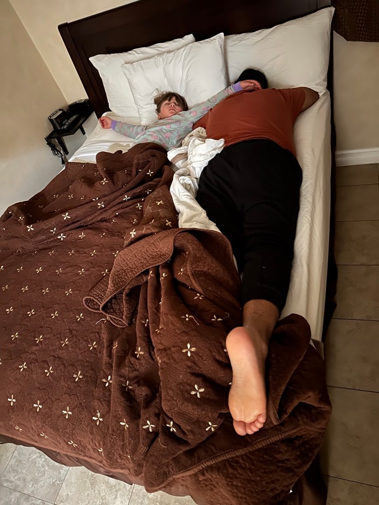 She took her very last ADHD med today having been weaned off them. She told me that makes her happy. She fully explained to me the two different melatonin she has, one melts in her mouth to help her get to sleep and the other she swallows to help her stay asleep. She easily went to bed on time and has been asleep for nearly 3 hours now. I’d best get some sleep. We are both really looking forward to travelling now.