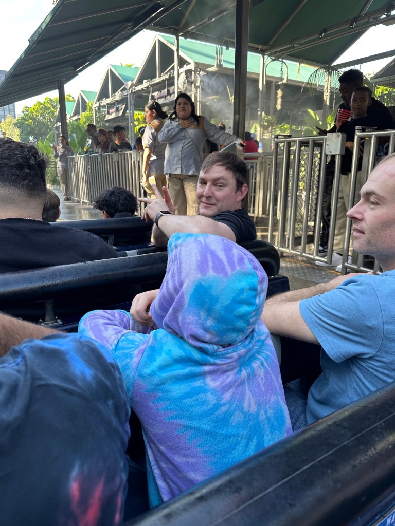 We all got in line and went on The Mummy which was fun and did not impress Will at all as there were parts that freaked him out. He and I rushed back to try to get into Mario Kart and it was the slowest time of the day, only a half hour or so wait. I am glad we did as I can say that I beat the game by doing all the things in that area of the park. And it was fun to do it with my Will. Unfortunately we caused Rae some stress. By now everyone was super tired. Only the 6 Guedes’s and I were left standing, all others having gone back to the hotel. We held them up, Will’s fingerprint was the one on the locker with Rae’s bag and my watch had already died and phone was about to. Tomorrow I shall be better prepared.