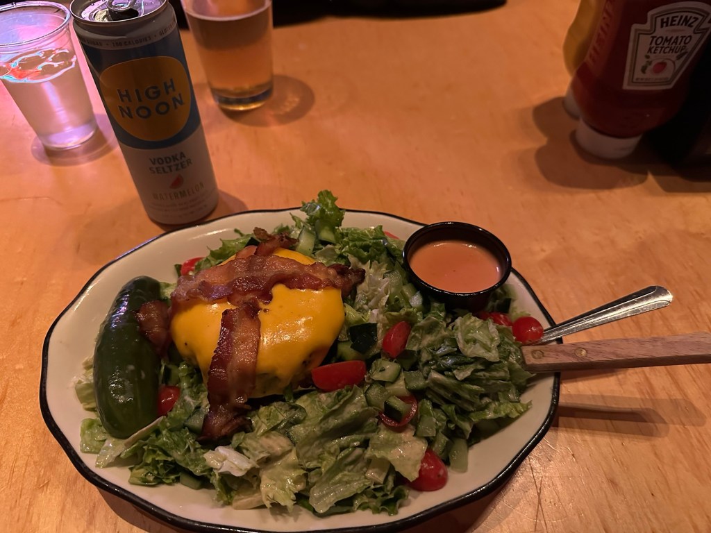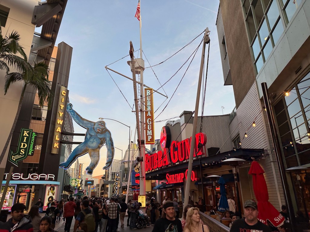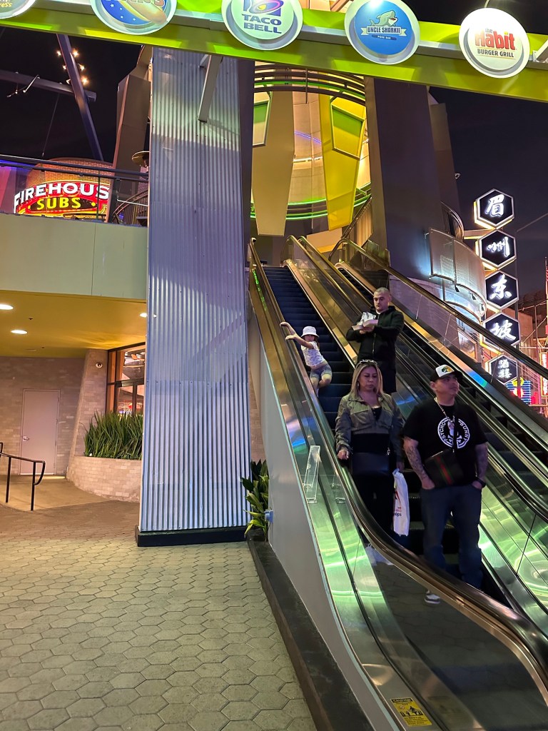 We dragged our tired selves up to the top to catch the shuttle back down so we could walk the few blocks back to the hotel. I stopped with Gene so he could grab food at FatBurger next door. I got beverages as I was so dehydrated. Tomorrow I shall be better prepared.