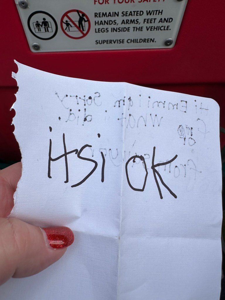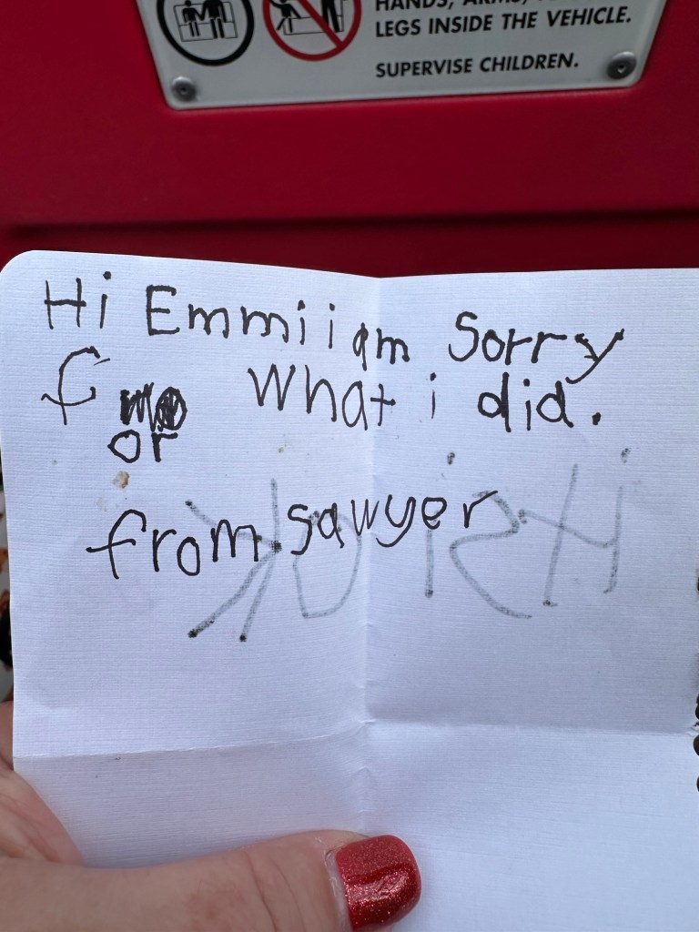 Jake, Sawyer and I took Emmy on her first roller coaster ride and she seemed to love it! It is short and not to stressful and she did ask if she could raise her hands up which was a good sign.