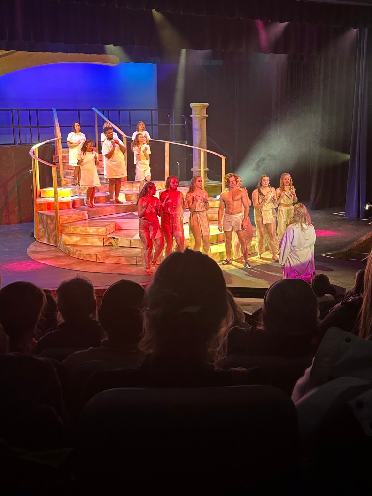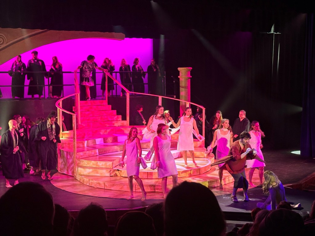 We went to the show at Key City and it was very interesting. It was very well done, especially for a community production of non-professional actors. There were several roles that I was especially entranced by including that of the very talented humans playing Jesus, Mary Magdalene, Judas and Pilate. The guy who played Pilate moved me with his rendition of “I dreamt I met a Galilean” as it is one of my two favourite songs from the show. The young woman who sang “I Don’t Know How to Love Him”, killed it. I am so honoured to know these humans in my daily even if peripherally. It was fun to see the sewing work I had done as well, including the brocade on the dresses and the scarves and gold accents around the black gowns. Ben Phillips stole the show as usual with his over the top portrayal of Herod. I was very judgy though and found it hard to just get lost in it. It is not one of my fave musicals. I find myself filling in the blanks and wondering if someone didn’t know the Biblical story, would they understand it. It was all in all a lovely evening watching old friend with new ones.