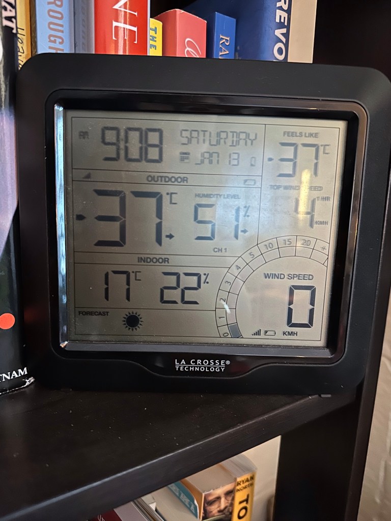 I was awake at 9 and when I heard the temperature, I did not want to get out of bed. My home is wonderfully cozy though and the pipes didn’t freeze so it was up into a hot shower before my ABC zoom.