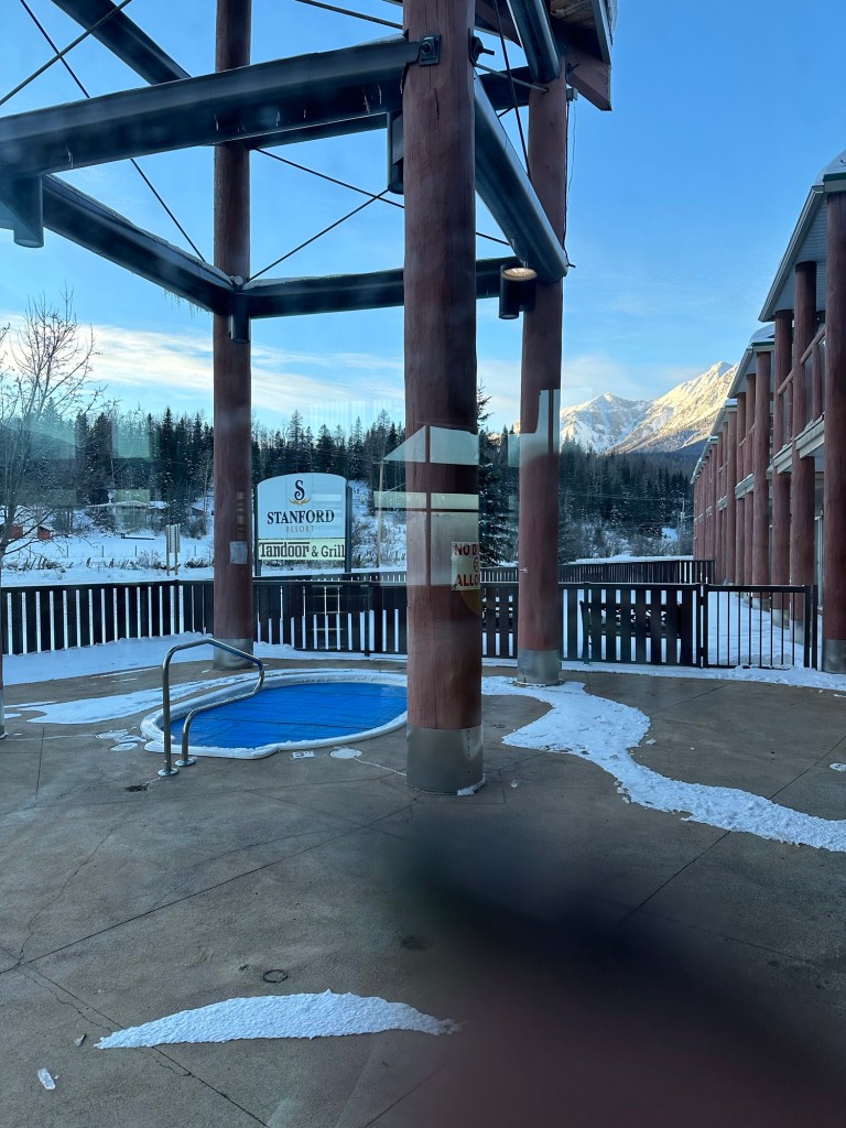 As we were leaving the room earlier I saw Kendra, who I used to work with at the firm, coming out of the room across the hall. After swimming, as we were heading back to our room, there a Dad and two young boys walking ahead of us. The older of the two kept turning to look at us so I said Hi. He stopped and said “Emmy?”. It was their downstairs neighbour’s from before they moved to Elkford. It seems that the place is teaming with very young hockey players from Kimberley and Cranbrook. They have mostly behaved well and I can buffer the sound in the halls with the TV while Emmy sleeps but at 9:15 there was a terrible loud ruckus right outside the door. I opened it and quietly asked that they just not yell outside our door please as my 6 year old granddaughter was sleeping. The older of the bunch, maybe 10, immediately apologized and it has been reasonable since. I must remember to ask if there are teams staying in hotels when I book them.