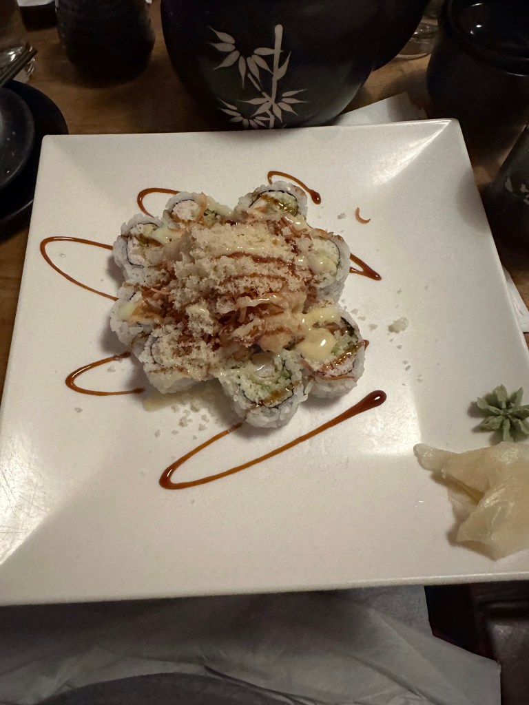 Em and I got out in time for a short Sauna and shower in time to pack up, dry our hair and check out. I received a call from Earth’s Own that I had been charged for an extra beverage by accident. That was pretty great service, and fortunate that I was still in town. We met Danika with Gwen and Thea at SushiWood after picking up the missing beverage. Danika treated us to a great meal. We sorted out more details about the upcoming trip. It was nice to spend time with smiling Gwen and I can’t believe Thea began to crawl yesterday at 7 months.