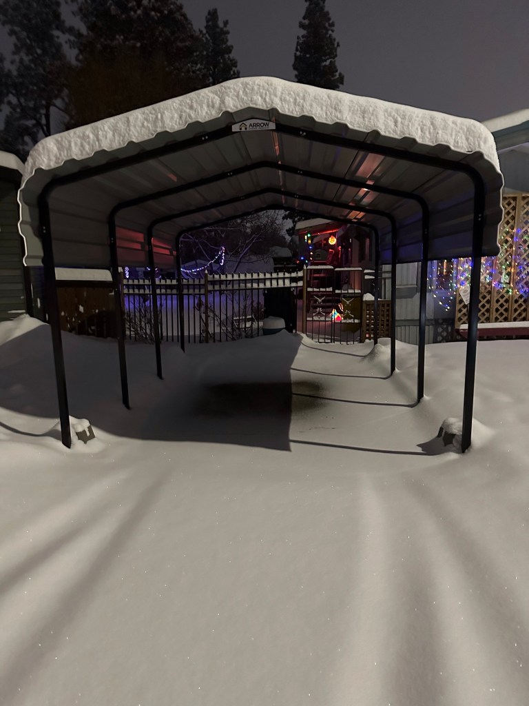 I brushed all the snow off my car and stopped at Safeway to pick up Moms pills and some dessert to bring to the Key City Volunteer party. I had a nice time and the entertainment was lovely, The Parsons. It was a blessing Clayton made it as he was rear ended today. Everyone is ok thankfully. I brushed off the car again and came home to shovel once more.