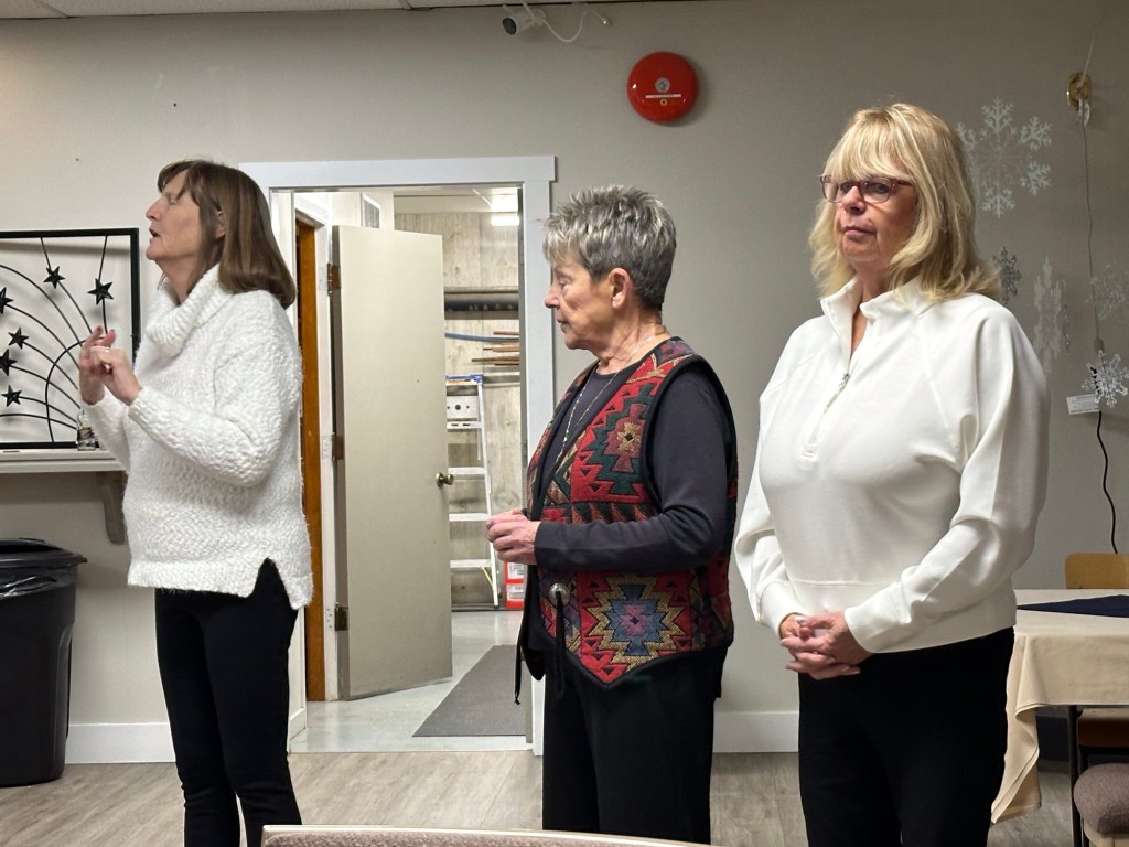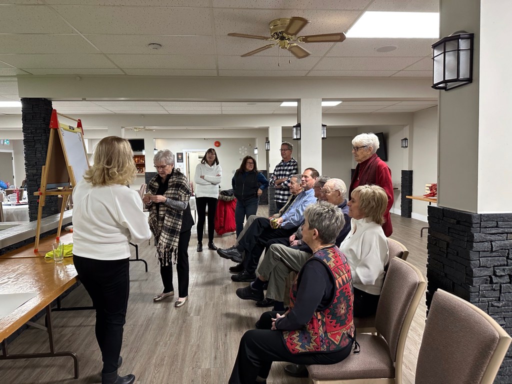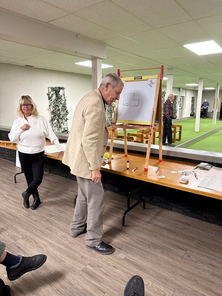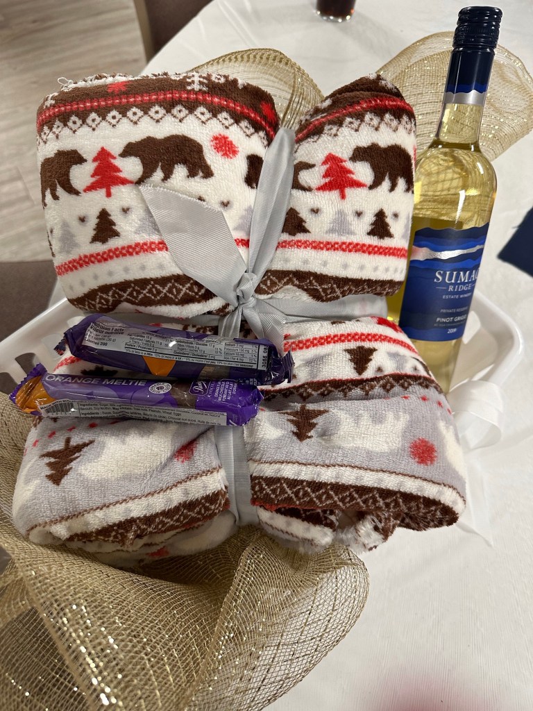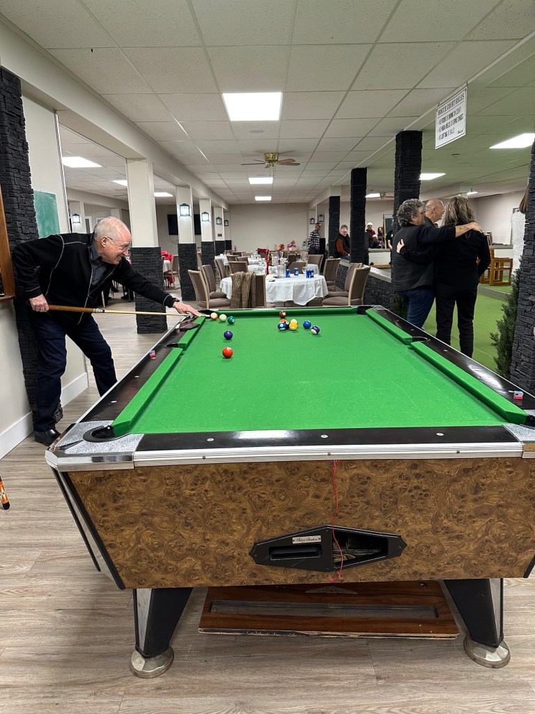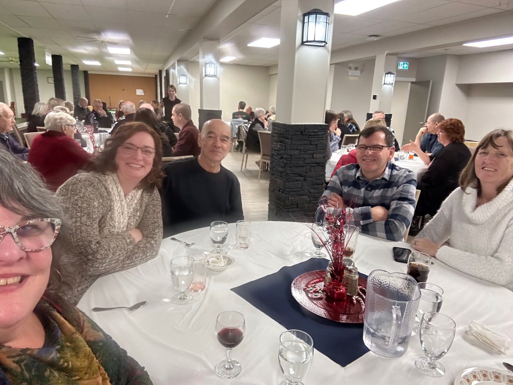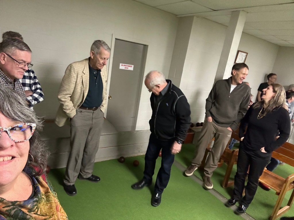 I puzzled and rested while watching my recording of the Emmy Awards. It was quite shocking how many big names died last year. I suppose that will be common now. I am of an age where all the TV personalities of my era are dropping off given they were likely all 20 years or so older than I. I saw Ashlée when she dropped off some posters that Deanne had kept all these years. They were the two shows I was in in the late ‘80s when I last lived here. Talking With was the one in which I handled a 5 foot boa constrictor. Great memories and so great to have these keepsakes. I headed off to Walmart and Home Depot in search of the bulb for my lamp from Peru to no avail. I will try to find one online. Next it was off to the Colombo Lodge lower level for the Rotary UnChristmas party. I had a wonderful time, the dinner was fantastic, the company was fun, games were played and prizes were won. Bocci was so fun, our team came in third. Four of us split the prize basket for Pictionary and I sewered on the 8 to lose at pool. It is a great venue and I will keep it in mind for next year for the volunteer appreciation for FPPAS. It snowed an inch or so again and I am now tucked in watching Book Club: The Next Chapter.