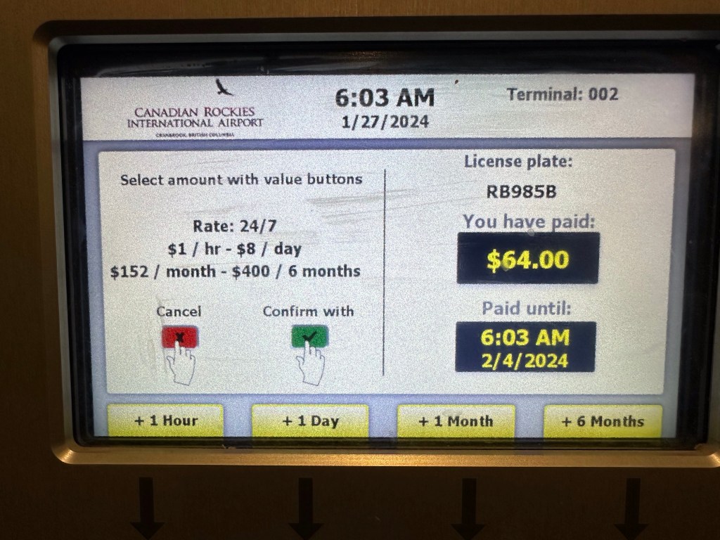 There may just be too many details in this day! I was up at 4 am with 3 alarms set as I had tried to go to bed early and wasn’t very successful falling asleep easily, and then woke up at 1230 and 2 before it was alarm time. I jumped in the shower, packed the last few things, stopped at RBC to get US cash out of the machine (yes that is a new thing), and then headed to the airport