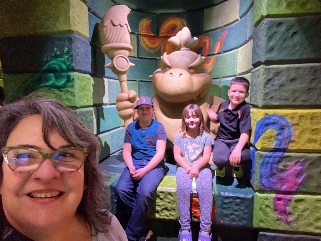 I am glad my kids and two youngest grands agreed to go on the Studio Tour with me. There were a few new things and the earthquake one isn’t working at the moment. Some of the references are old but I still enjoyed it. Only wish I could have thought ahead to make it to a voice or other show, taping.