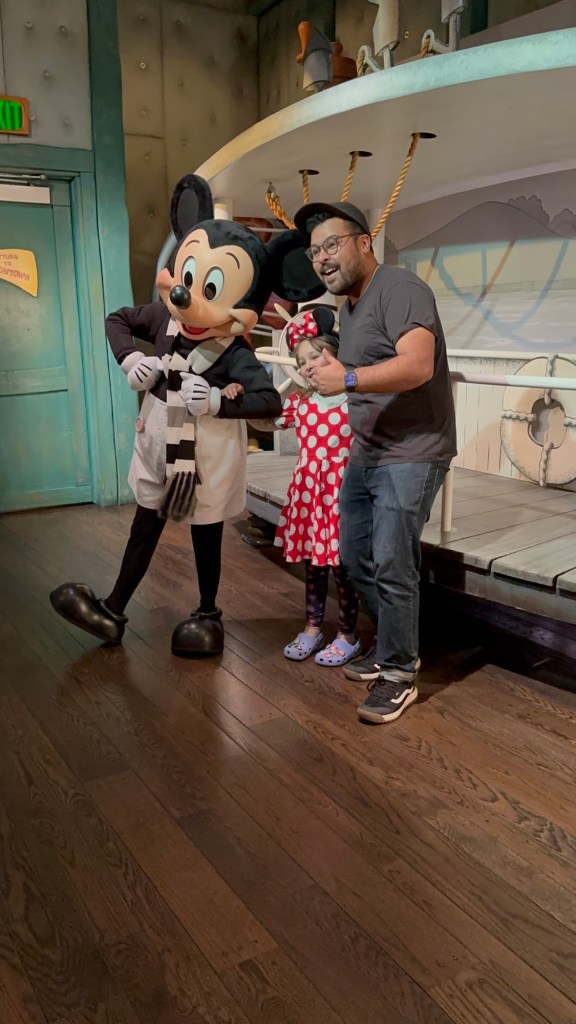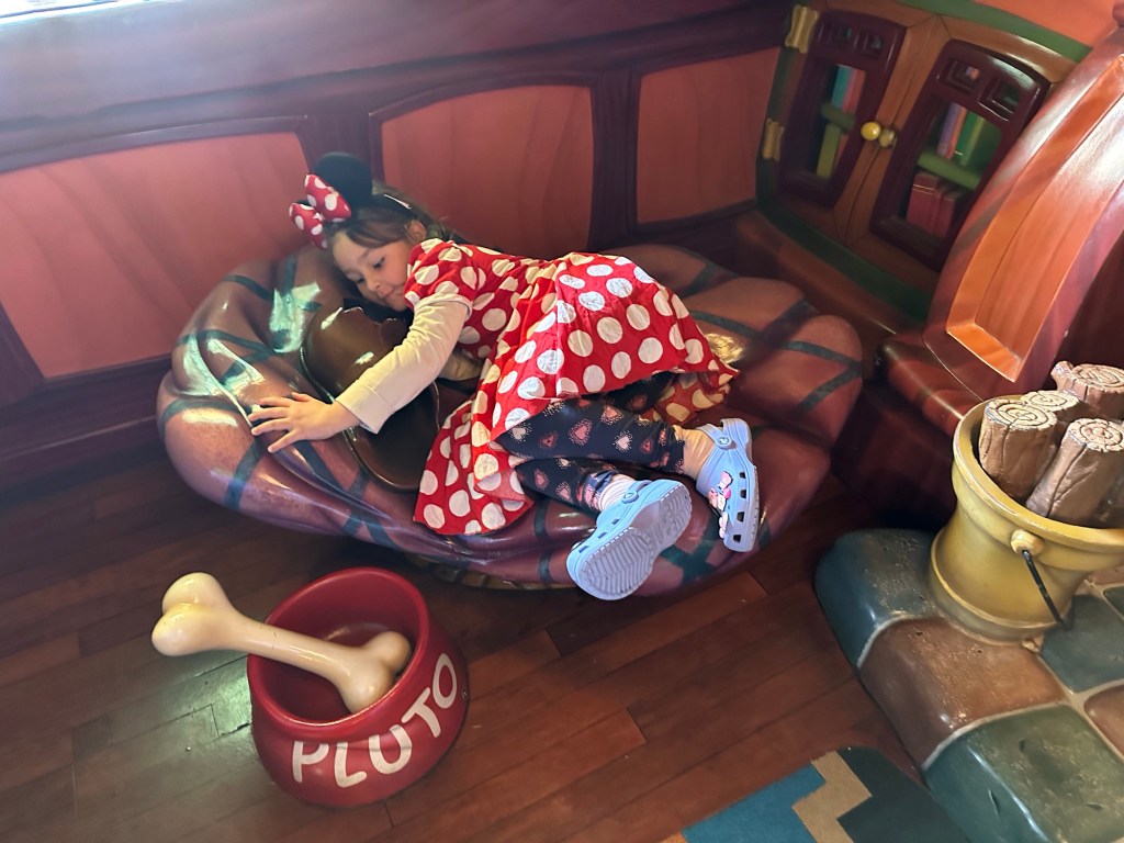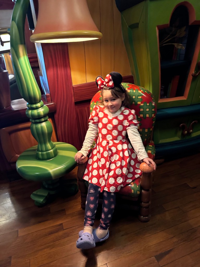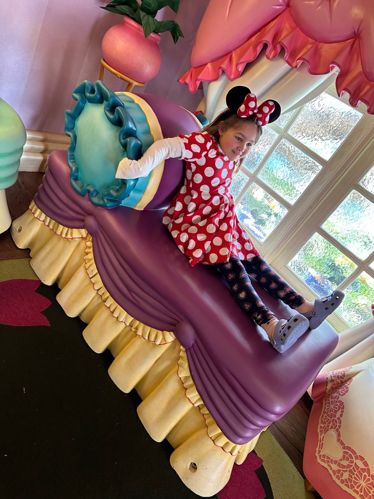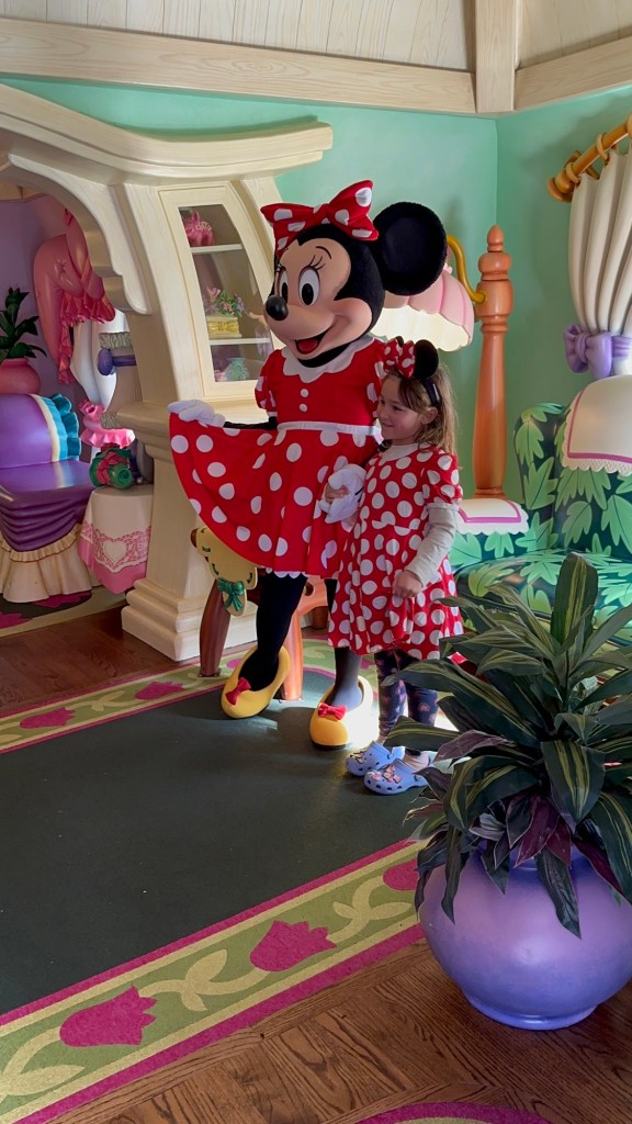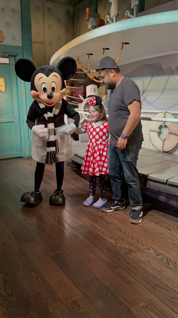 Up early again, off to breakfast and then headed to the park. It is a park hopping last day with each of us looking to do anything we feared missing. Ashlée and I went together and took the train round to ToonTown to meet Jake and Emmy and go to both Mickey and Minnie’s houses. Emmy was just adorable meeting Minnie and was speechless after meeting Mickey.
