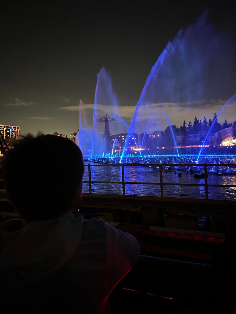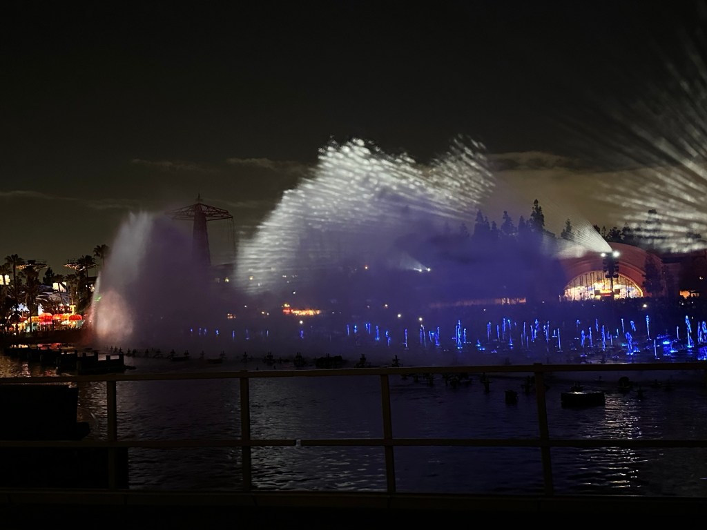 Will had missed the World of Colour show so Lukas was excited for him to see the fire coming out of the water. We were behind it this time but it was still amazeballs. While we were in line for coaster we got to see the Fireworks from Disneyland!