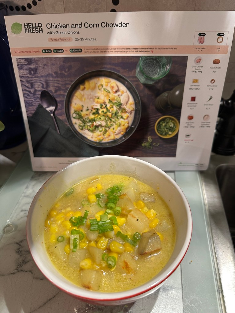 I slept in a bit, did laundry and a bit of cleaning. I crocheted but ran out of a colour and they didn’t have it at Walmart last time I checked. I ran 50/50 near the entrance and although I didn’t get to see much of the first two periods, the third one was action packed! We won Game 6 in OT against the West Kelowna Warriors. I went to Walmart on the way home and found the colour I needed in stock. Didn’t get home until well after 8, but figured I should make food. The corn chowder was delicious even with leaving out the jalapeño. my yard is so nice since Lukas raked it and now my willow is coming out in full force with the nice weather we’ve had.