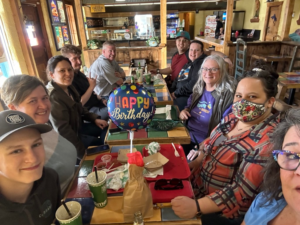 I did some more filings and then headed to meet the family and friends like family at Taco TIme for dinner. It was my choice and I had a good meal and fun. The manager (owner?) brought over churros for everyone when he saw it was my birthday.