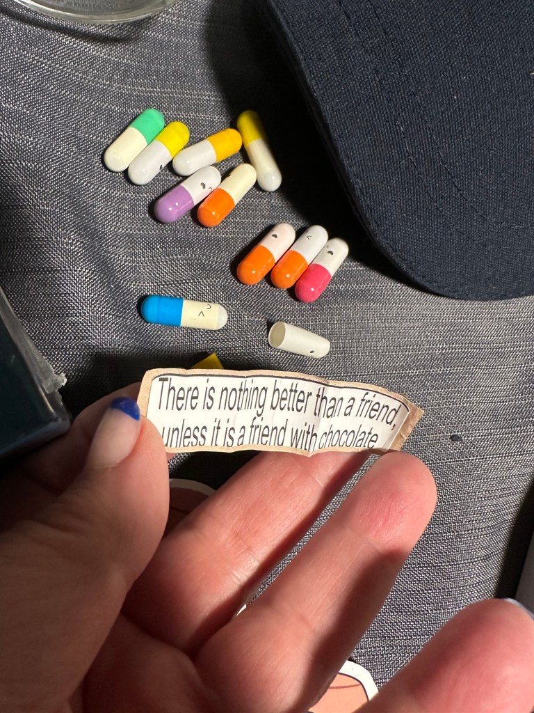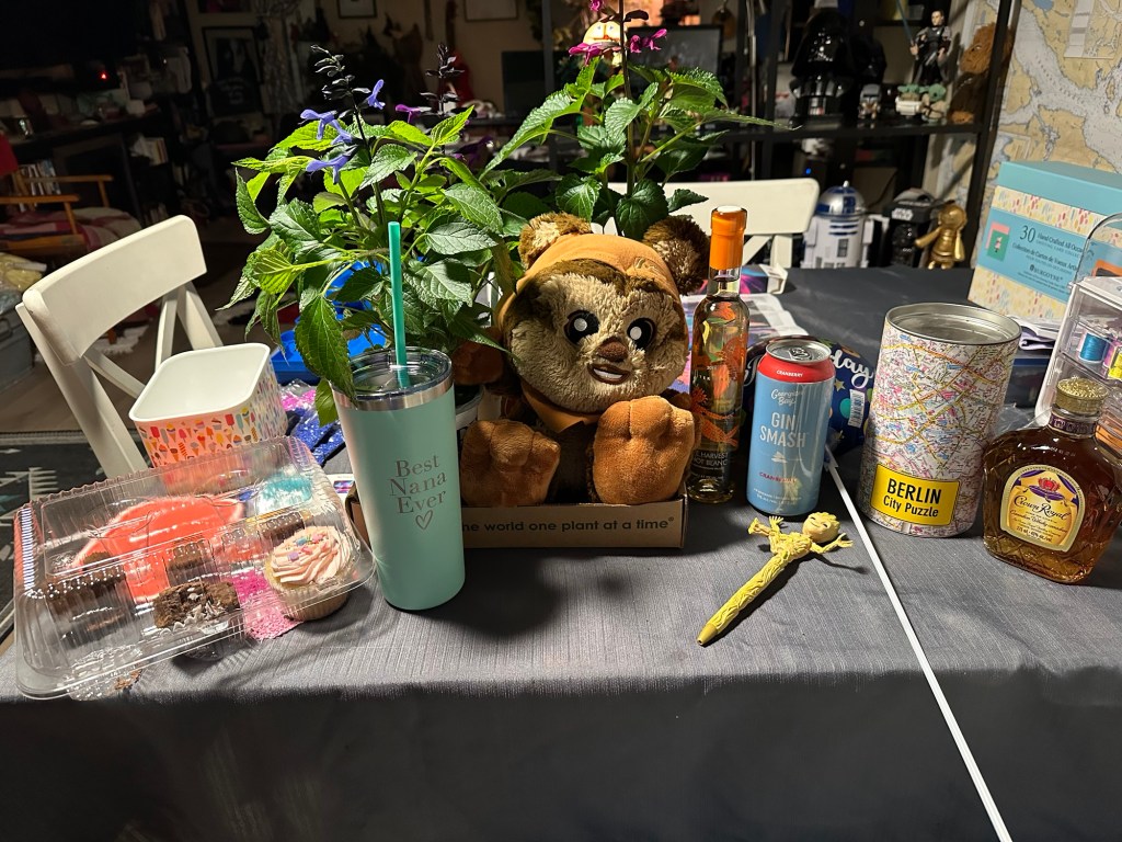 My feet were hurting as I made the mistake of sitting down. I was wearing my beautiful shoes that I bought on Carnaby Street in London and I clearly haven’t broken them in yet. As long as I was walking they were perfect, but then ached once I sat for a time. I chose to wait until I won the two GC I had bid on, both of which are for things I buy anyway, for the salon I go to, and the liquor store. I am now home at a reasonable hour, having had a perfect day and am watching more of Severance which is a brilliantly odd show.
