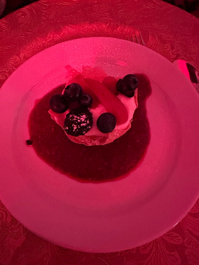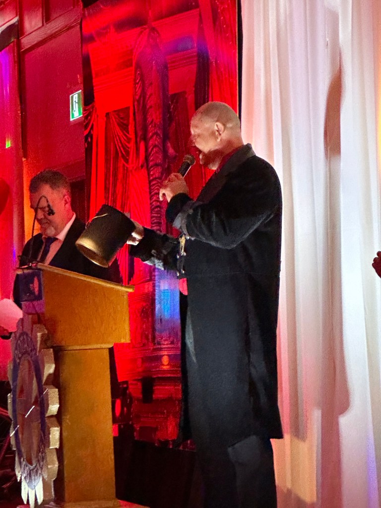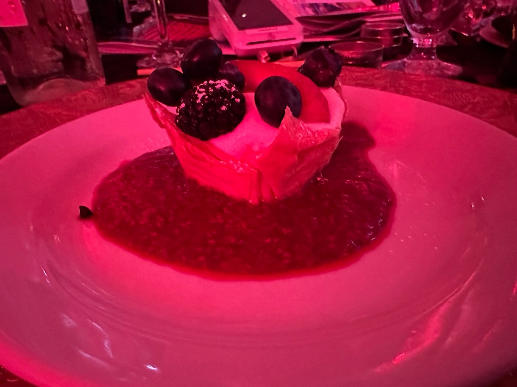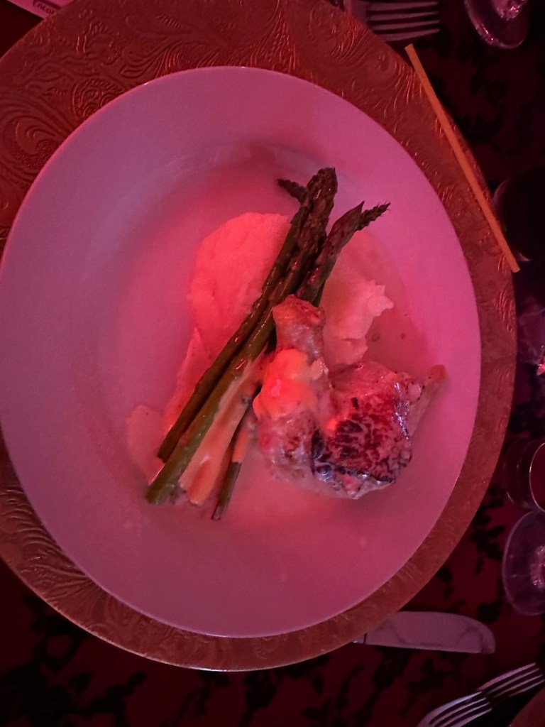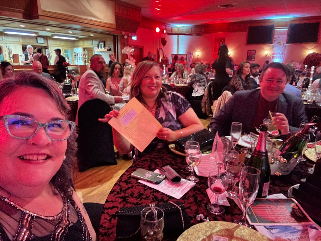 I crocheted and relaxed and binged Severance until it was time to get ready and be at the Colombo Lodge for 4:45. Tonight was our amazing Rotary Gala with a Moulin Rouge theme. It was breathtakingly beautiful. The decor and st up crew did an amazing job. The food was perfection and being the ninth at a table of new Rotary friends made my night.