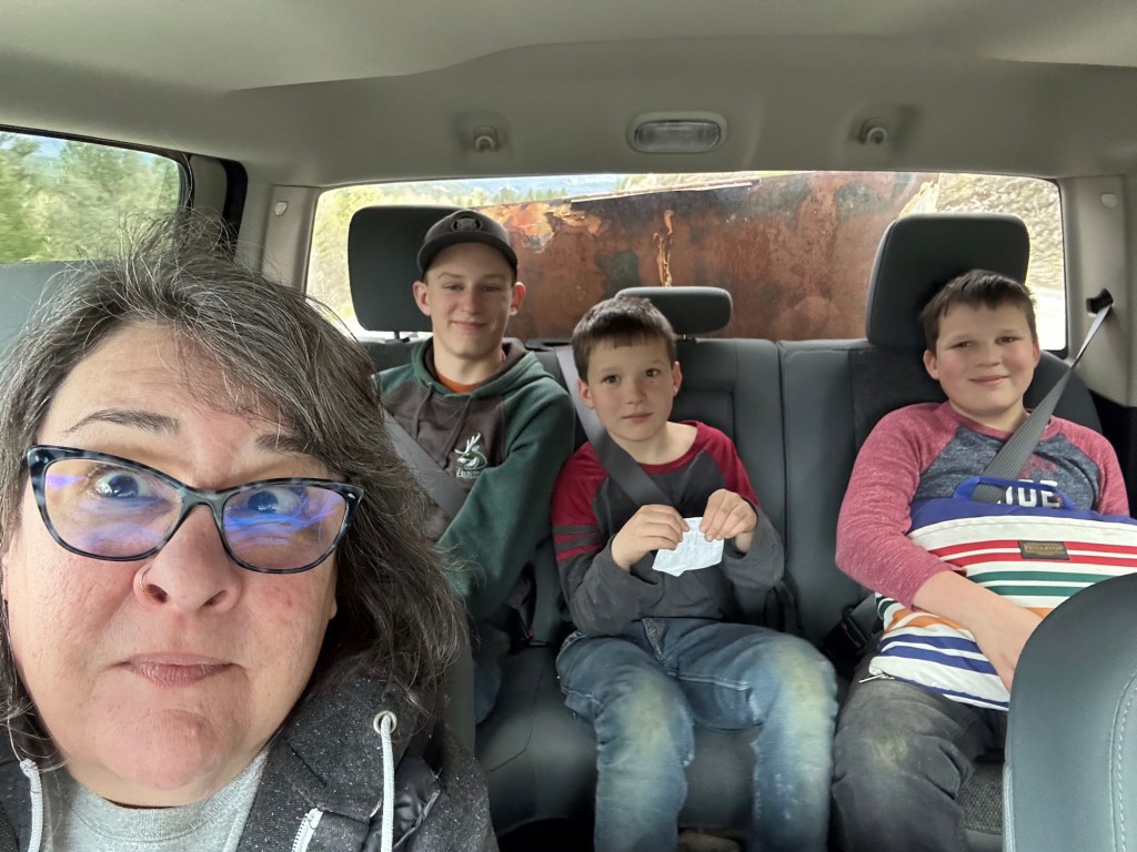 I did laundry, etc today while I watched For All Mankind and waited to go with Bill and the boys to pick up a lovely dining room table from my friends out in Kookanusa. Lukas, Will, Sawyer, Bill and I took Roger’s truck and off we went. I didn’t mention until we were turning up the driveway an hour later who we were going to see and it turns out Bill knows Lance, lol. We loaded up and grabbed my Willys hood that was out there as well, Bill had a good visit and then we headed back with a stop at the DQ drivethru where Nana treated us all to ice-cream treats.