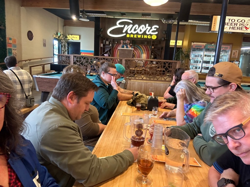 I did a good mix of free and paid work before heading to Encore for dinner with other Founders and the new Friends With Benefits which I will be after this month. The food was delicious. Samples of what may end up on the menu served up with pitchers of beer. The company was great and I got the owners and brewmaster to sign my shirt.
