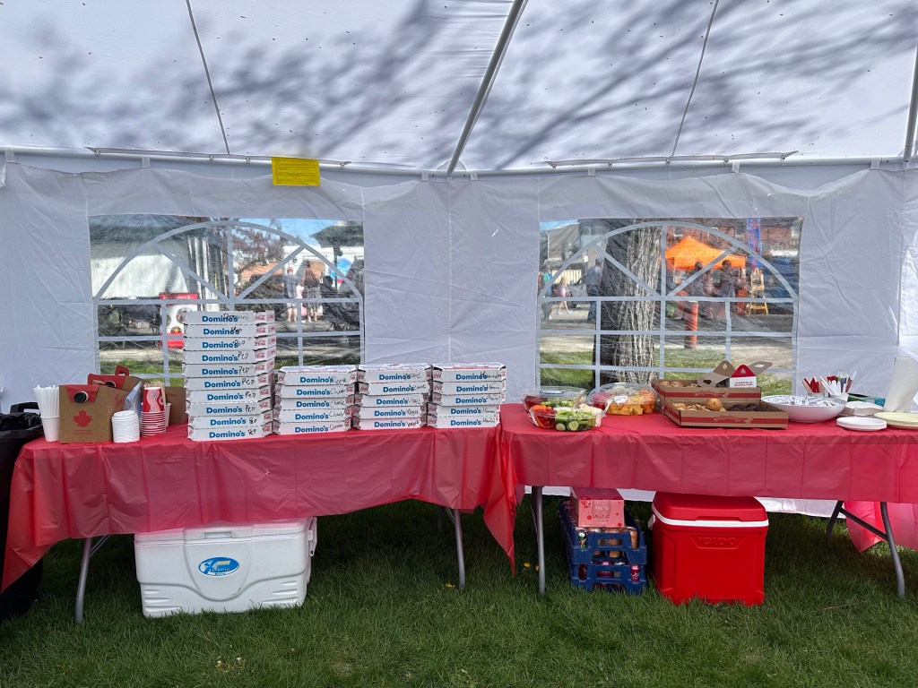I picked up coffee and Tim Bits at 9, fruit and veggie trays and drinks at Safeway, and the muffins and yogurt at FireHall. Once at the park, Shayne from JCI was there to help for 4 hours in the Green room/volunteer hospitality tent. We kept the food and beverages rolling and provided a safe space. The feedback was great.