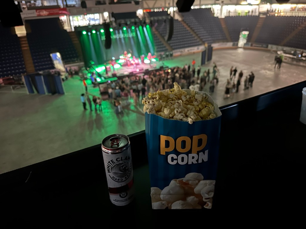 Stopped at Encore for a bite to eat before heading to the Arena to do 50/50 for Rotary. The concert tonight was very poorly attended, maybe 250-300, but the bands were great