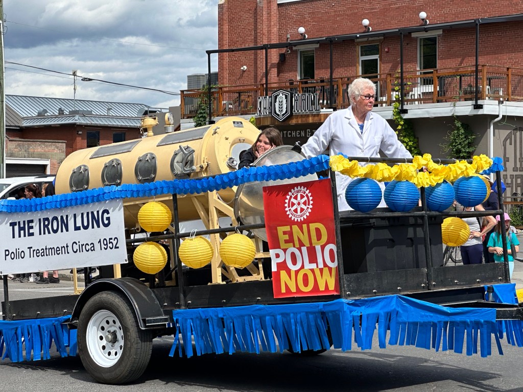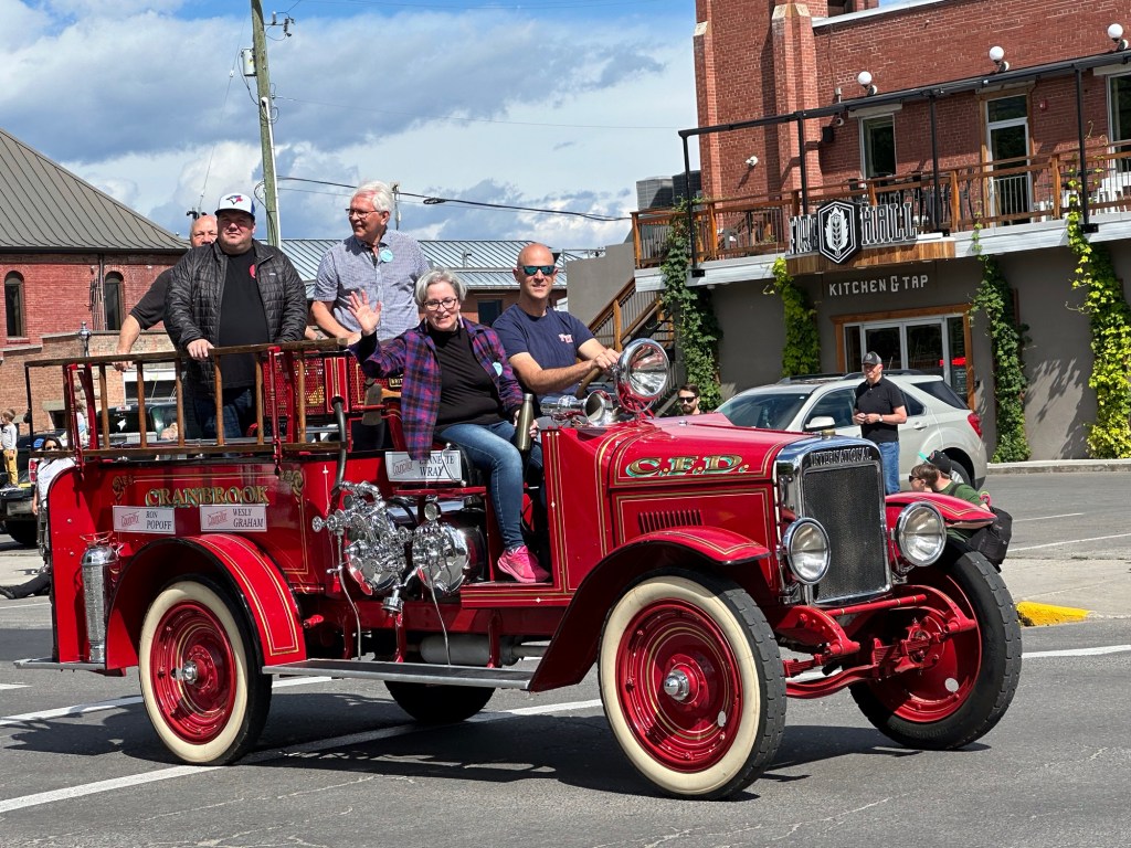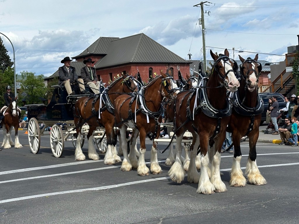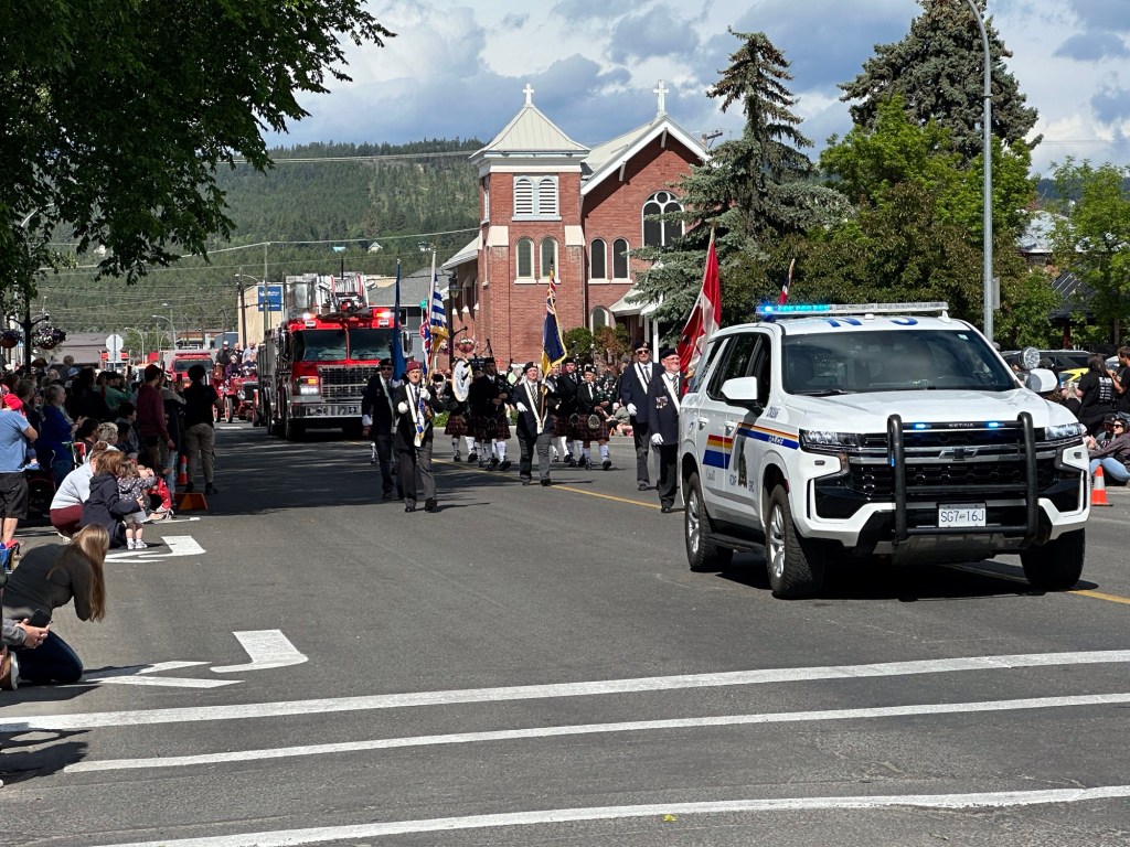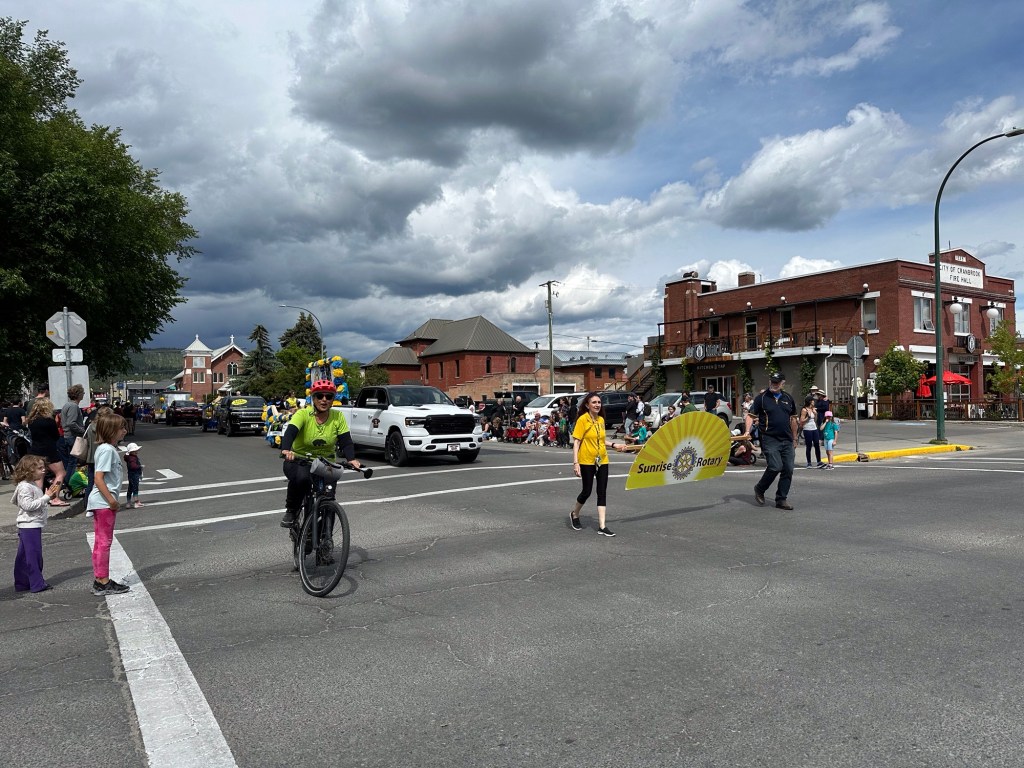 I was up at a decent time and headed to park outside Ashlée’s to walk down and meet everyone outside Morchella’s to watch the Spirit of the Rockies parade. On my way down I met Walter from Rotary working alone to get a barricade set up on the FireHall//Rotary Park corner. I stopped to assist and found he didn’t have someone to assist at that busy intersection so I volunteered to stay with him. We were a good team. It was a great spot near to the end of the parade and many needed to be turned away that were trying to get into the route to park.