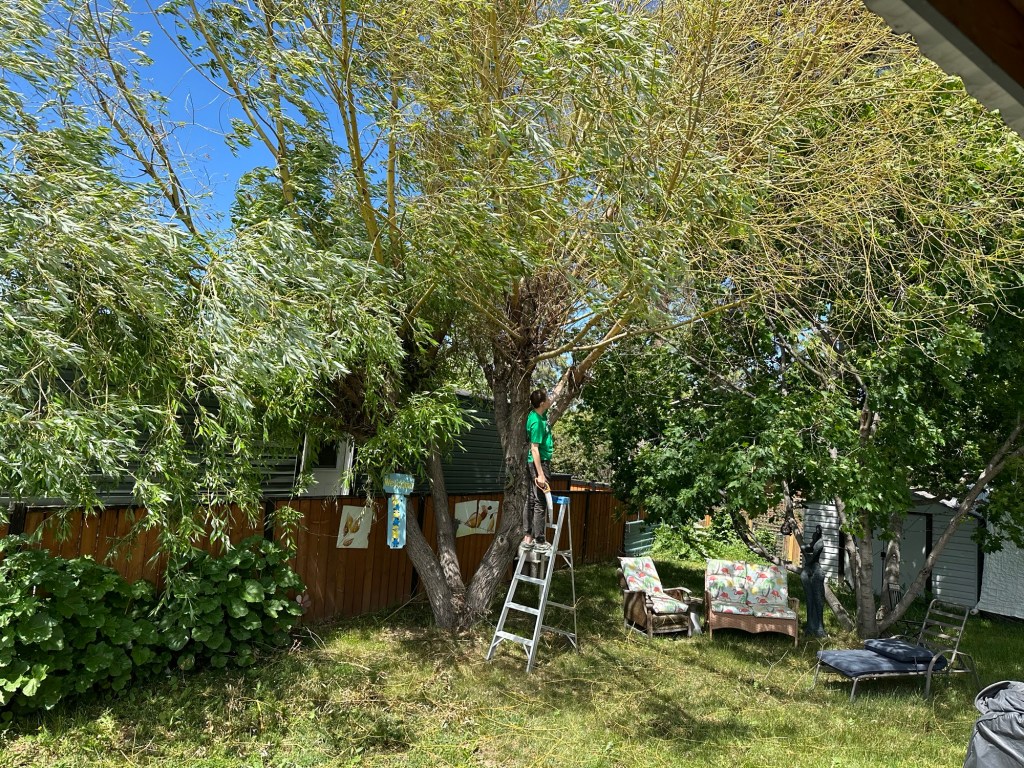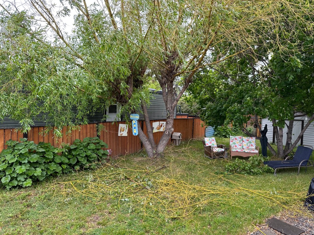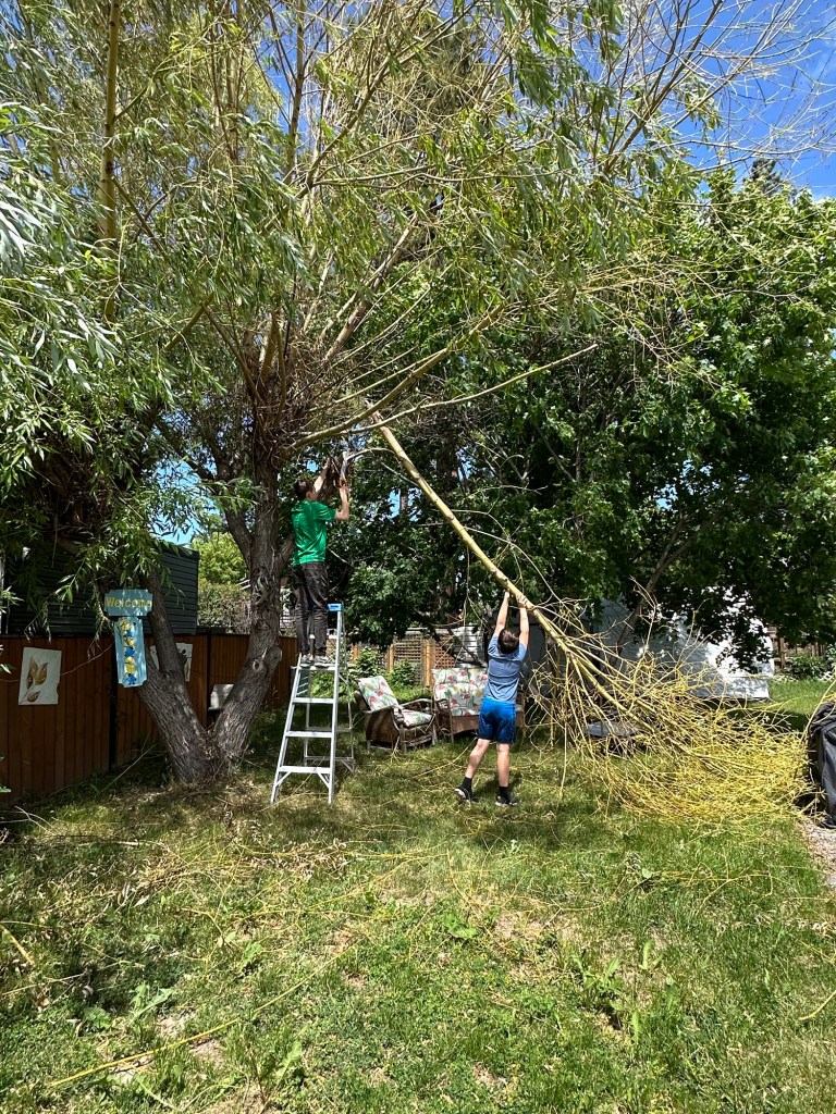 Roger dropped off the boys and traded me vehicles so we could use his truck to take away all the branches. Not too long later Emmy got picked up but not before she got to have some fun helping as well. Lukas was amazing as it was very windy and he got up there with the handsaw and I had the roped pull things down and we had to cut off a lot of branches from my tree in hope of saving it. We gathered all the branches with the help of Tracey even and loaded them into the truck and took them all to the yard section at the transfer station. My tree looks so sad now, but I have hope for it. I never could’ve gotten all that done without all the help either. There are still a few bear branches, but they are too high up and it was far too windy to risk Lukas reaching them.