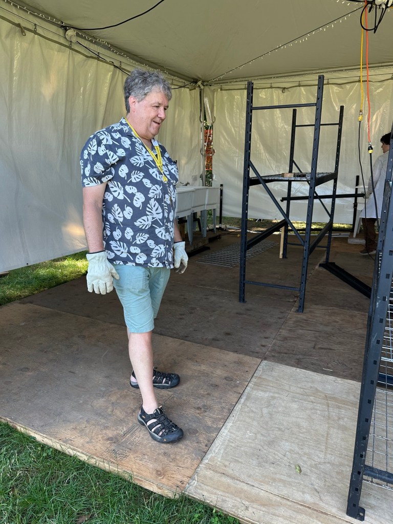 The morning was spent puttering and directing when things should be placed or built. It is hot but there is a nice breeze and it is like walking into air conditioning when you move into the shade.