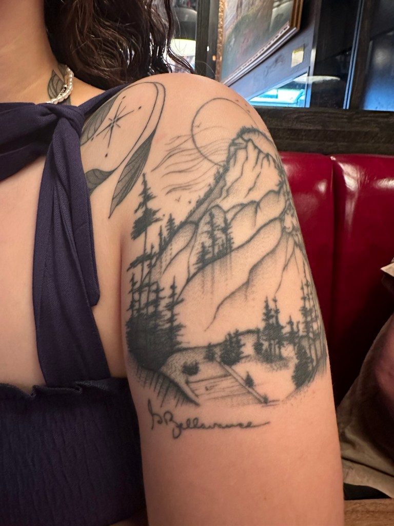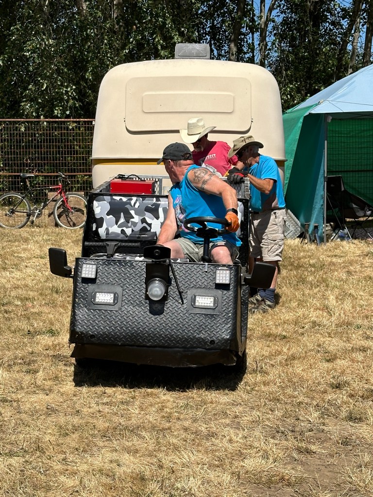 I woke up around 8 after a not too comfortable night due to not fully setting up last night. It’s a good thing I didn’t though as where I was put was too far into the fire lane. Mark, Gerry and Ian moved Ian’s Boler over and carried my tent for the move. I tried to get Ashlée’s tent set up with her when she arrived. It was complicated and once more put us into the fire lane. We headed off to town to meet my niece Maya and her partner, Aiden for dinner at Brown’s Social house where we had good food and drinks and even better conversations. She has an amazing tattoo of Mt Maxwell with my Dads signature under it. Ash had taken me to Staples to get a new case for my iPad which is much better than the one I shall return when I get home. Once back on site, I finished setting up my camp, moved her tent to a shady spot and visited with friends. I have done some Fest work as well today, confirming with screw crew where I need ramps and stairs, etc. The vibe tonight is simply lovely. I did visit first aid to attempt to dig out a deep sliver I got this morning. He even had a sliver kit. Hopefully that is it for injury for me. I plan to watch the last of The man with 1000 kids and tuck in. Much work coming soon!