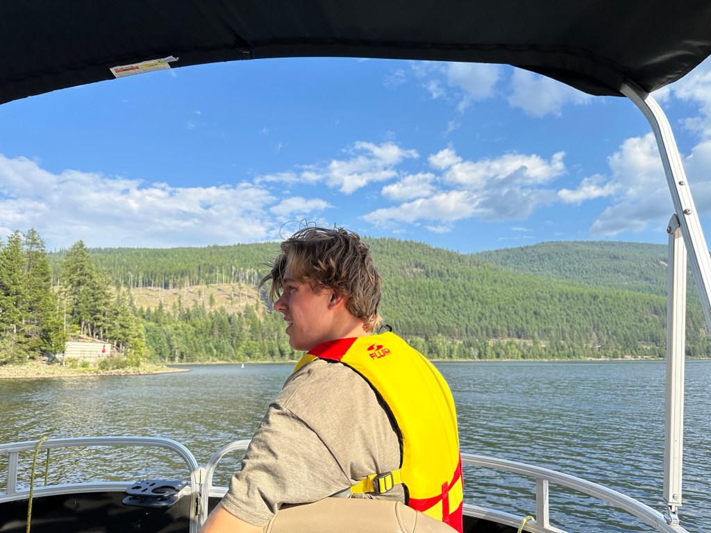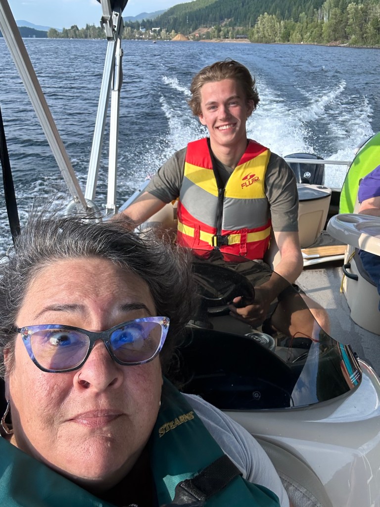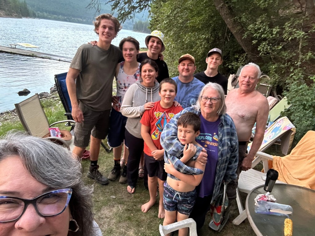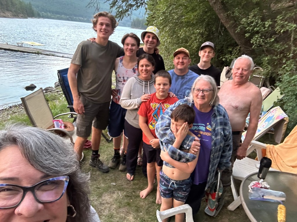 I got a good amount of work done in spot of being in the ‘I just want to sleep’ stage of depression. At around 3:30 I called it a day and headed to pick up pop for the boys on my way out to the Perreault cabin at Moyie Lake. I had a lovely visit with Rae and the rest of the clan that included a boat ride and BBQ. Around 9 I decided it was time to head back home. It was a perfect evening.