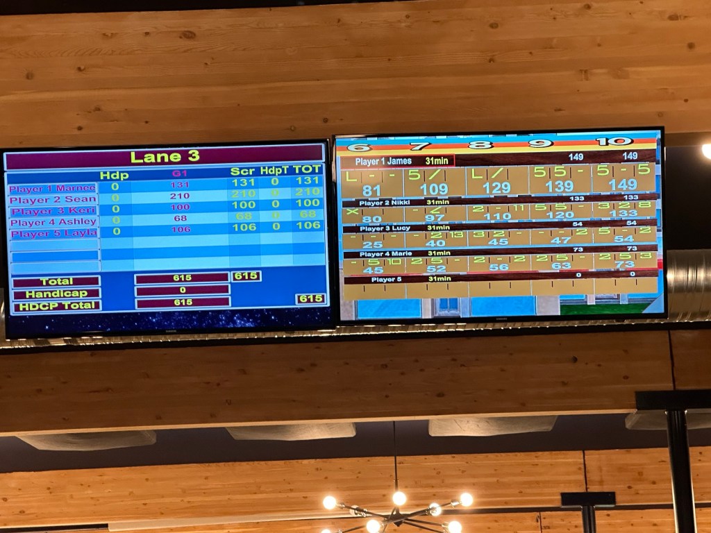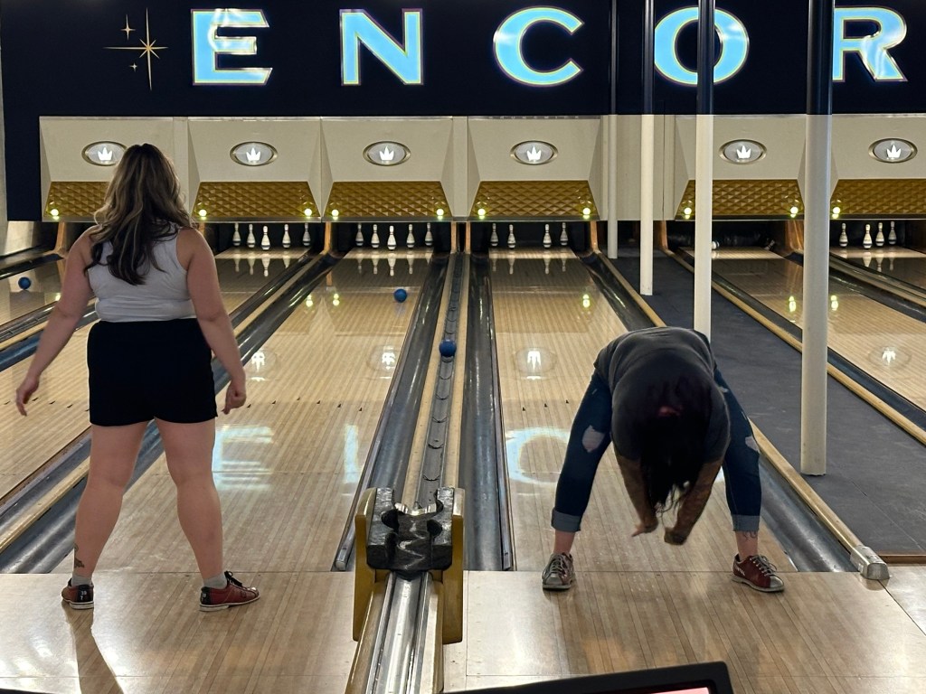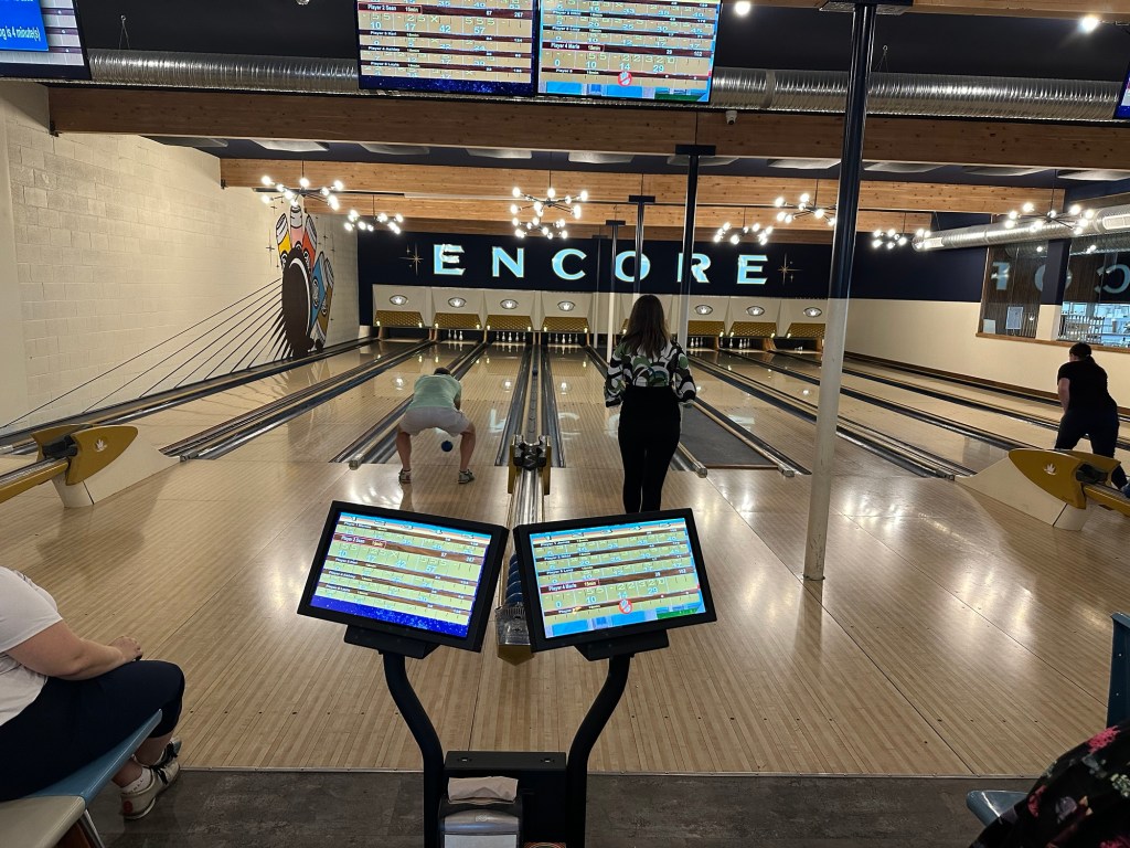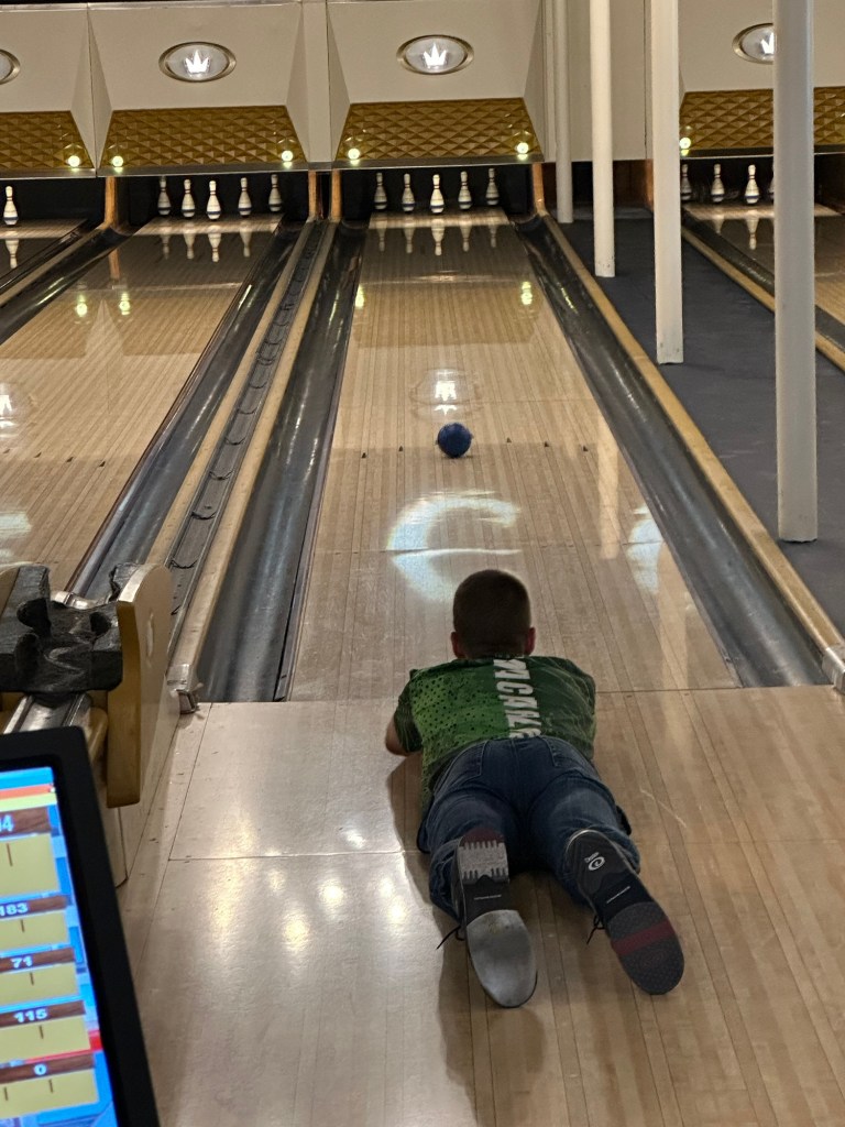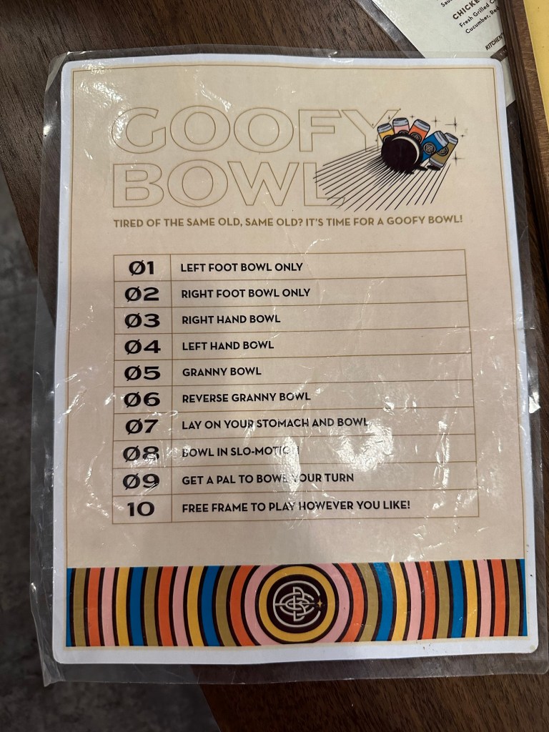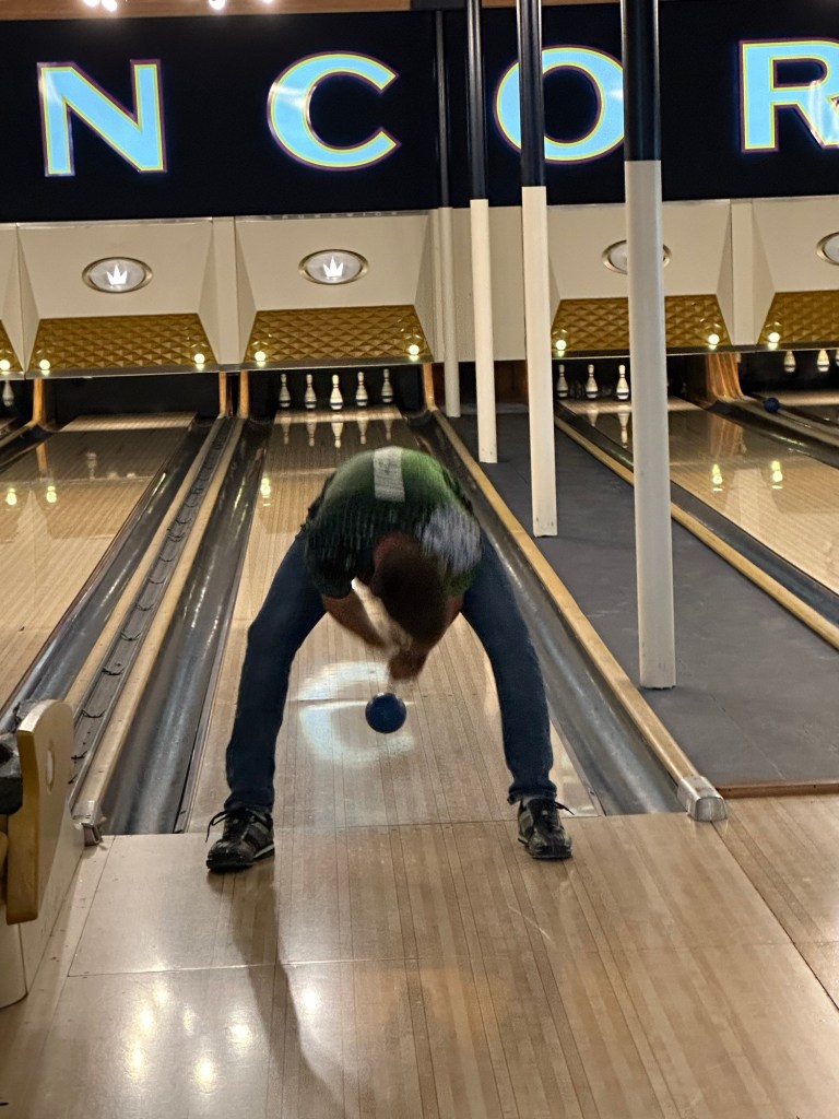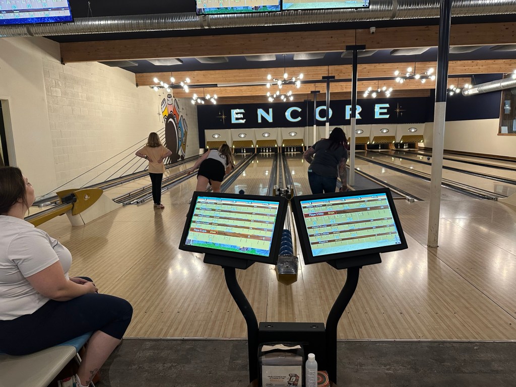 I got my payrolls run just in time to join the CFEK crew for a fun afternoon. We were supposed to golf but it was pouring rain so we all went to Encore for food, beverages and bowling. The first game was normal and we managed 8 more frames of Goof Bowl. It was a fun afternoon and I was grateful to be included. I came home very tired and have been watching Narcos and crocheting. I will retire early as I have to pick up Mom and bring her home in the morning.