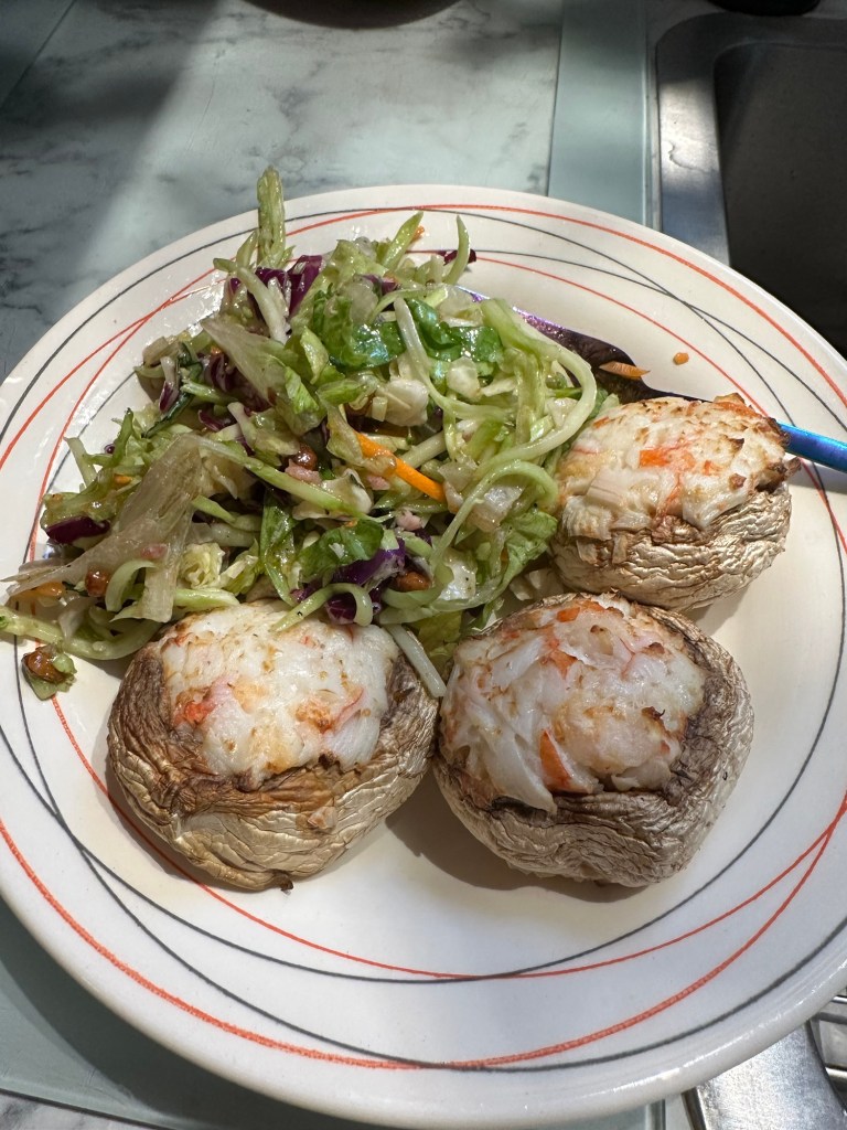 I did go through the car wash, and even that didn’t lift my spirits. I am also struggling to find someone to feed Missy while I’m away and just take any calls about Mom. Everyone is busy, unable or away. The dinner I made was light and easy. Good thing I hate wasting food as it is making me eat.