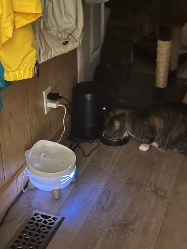 I woke up to banging in the house and worried that something had gotten in but it was just James II doing his job and knocking things over