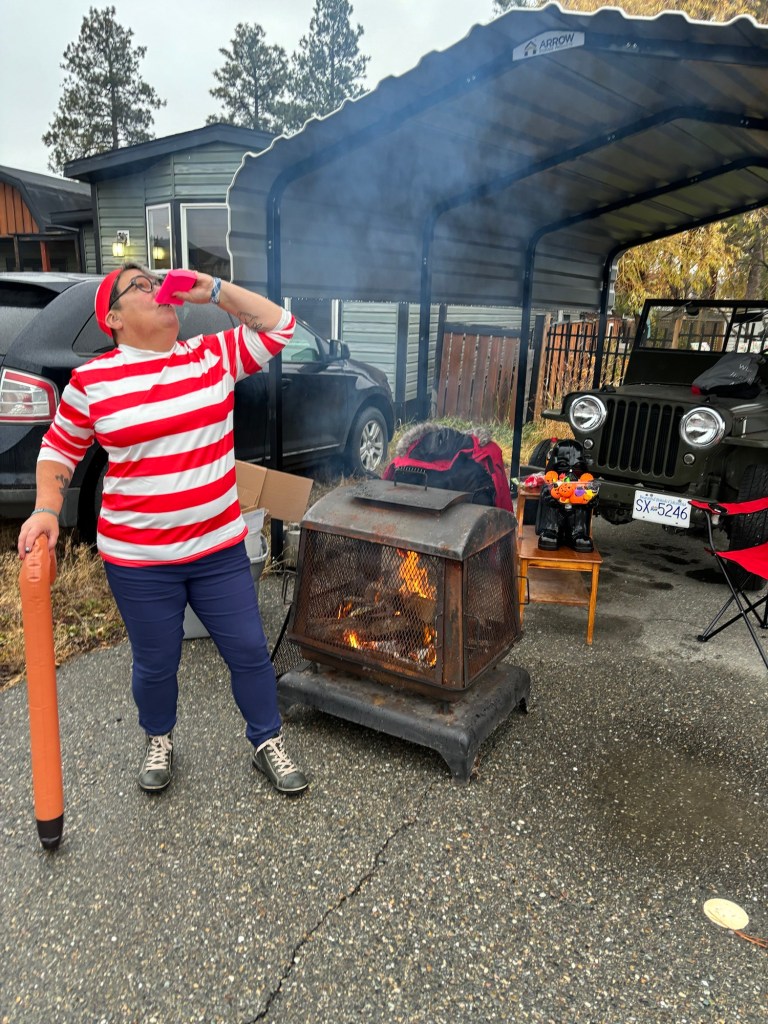 I came home and set up for the night with my fireplace and Fireball shots for adults and Halloween ducks for the kids. Tracey and I hung out together, debriefing our trip and shot for shot enjoying the night