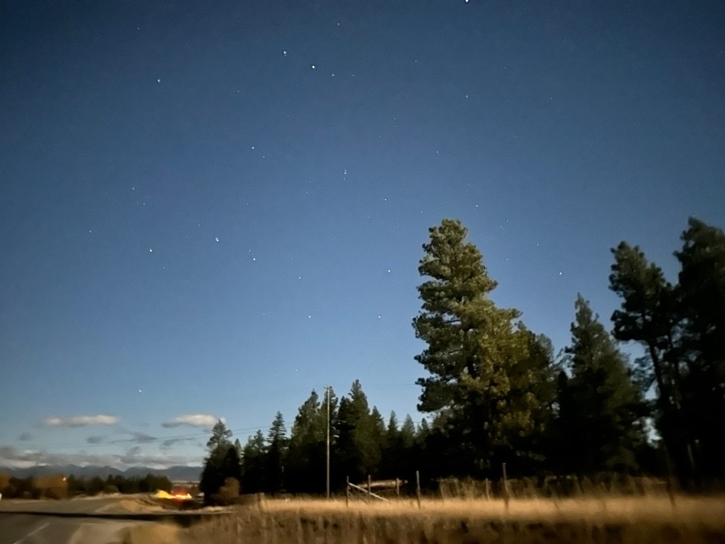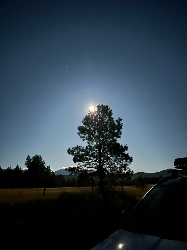 After getting some work done I headed out to the KOA grounds at St Eugene to spend the evening with Dave and Deb. We had a delicious meal and great conversation. I am so glad they moved here. They are living in their gorgeous new trailer while waiting for completion on the house being built. The full Hunter moon is stunning and quite lights up the night sky.