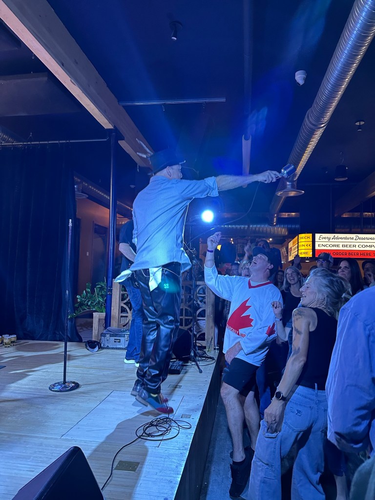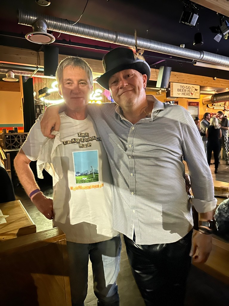 Tonight was a lot of fun hanging with Dave and Deb at Encore for the show. I e seen the actual Tragically Hip three times and these guys do a great cover. The lead singer acknowledged my hat from the stage and afterward came to our table and said he was going to offer me his feathers but realized he didn’t have others with him.