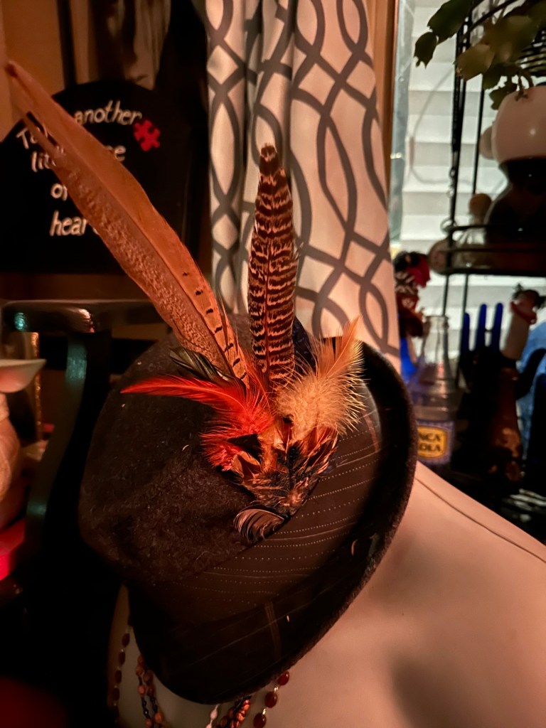 A lovely start to the day was getting a message from Rae-Anne that the lead singer of The Hip Replacements had dropped off his feathers to give to me. What a sweet gesture! I shall add them to my fedora