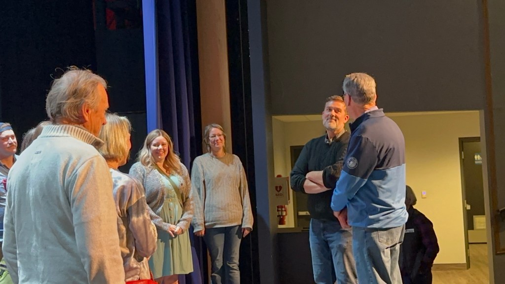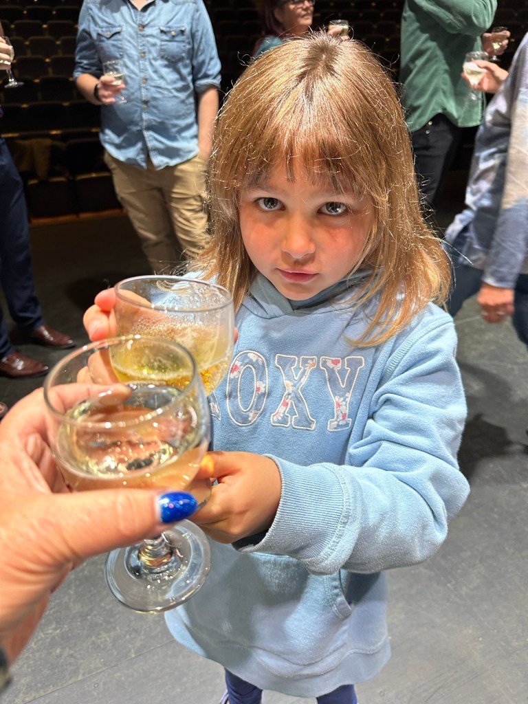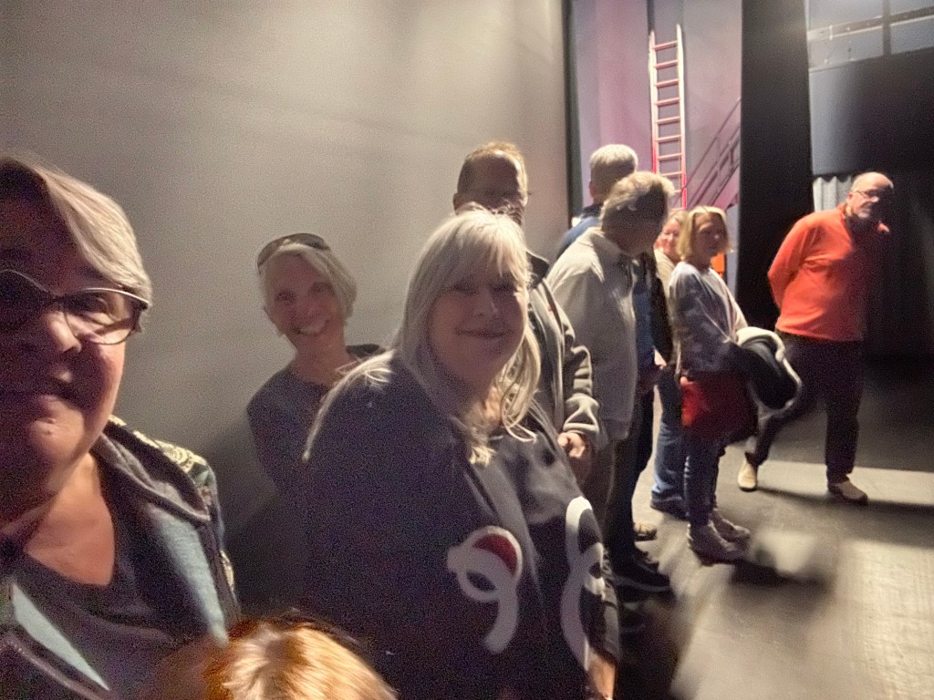 I had a good work morning and then Emmy was dropped off to spend time with me as she awaited her Dad’s arrival. She was really great hanging out in my office and then joined me at Galen’s surprise party for his 10 years as Artistic Director at Key City Theatre. The crowd entered through the stage door and hid behind the curtain on stage. He was properly surprised and a lovely time was had.