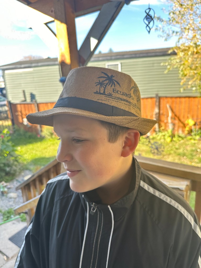 Jake dropped off the Brussels sprouts for me to ready and I gave Will his Panamá hat that I brought him and he was very happy