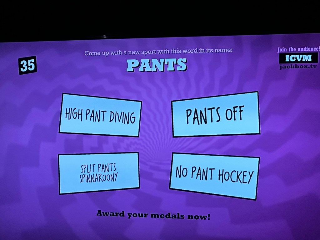 After dinner we played games, a version of Hungry Hungry ‘Hippos’ and then Jackbox (which I won)