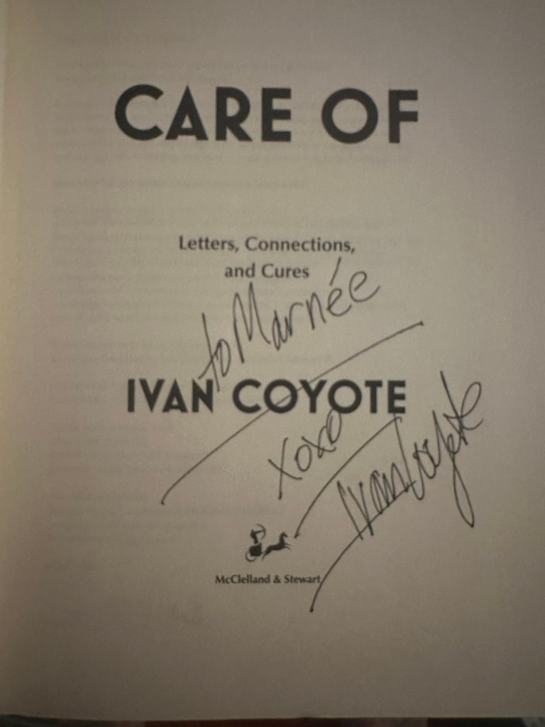 I volunteered for a show at Key City tonight and owe much gratitude to being placed on a door where I not only got to interact with Ivan and Smokii Sumac before the show, but enjoy their entire performances. Smokii is a passionate human whose animated feature that was part of the show spoke volumes to love and loss. Ivan took us on a journey through their early years as it intertwined with music of the 70’s, and 80’s and growing up in the Yukon. I may have a crush on them. We had a good laugh as they had mentioned Aussie Spray and I was actually wearing it yesterday. We also chatted about Atlin and know the same peeps there.